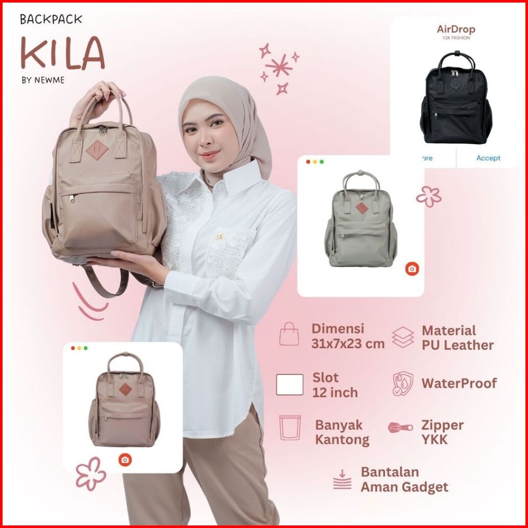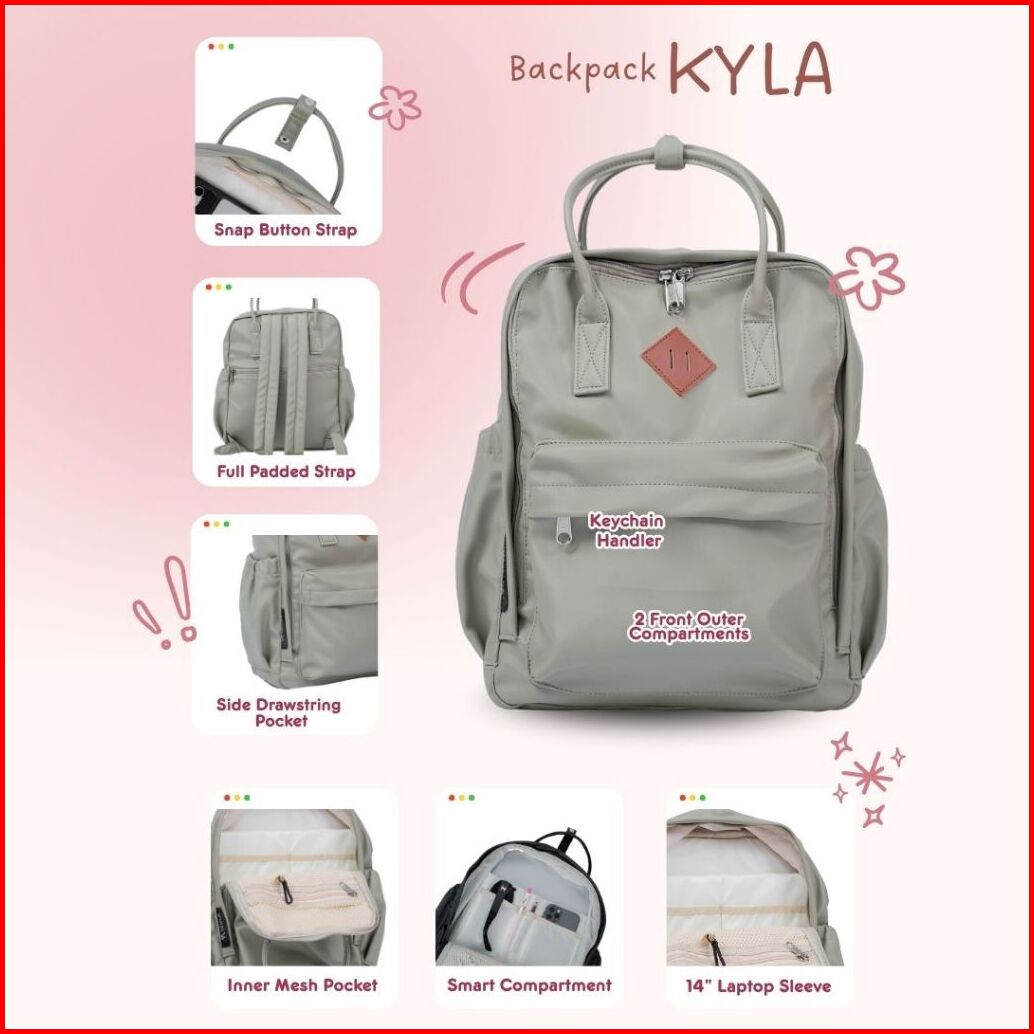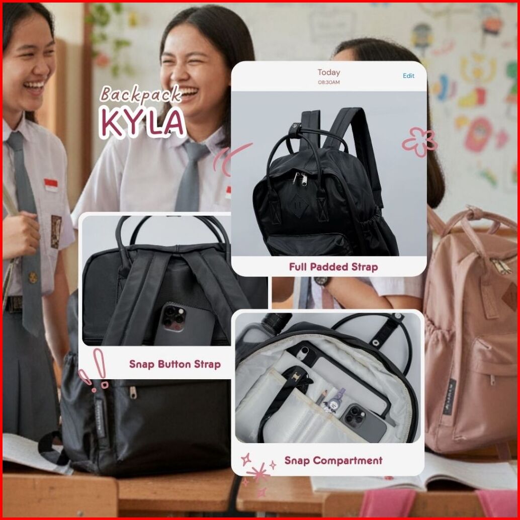 Backpack Kyla Tas Ransel Laptop Tablet 12 Inch Waterproof Banyak Kompartemen Ykk Cewek Wanita