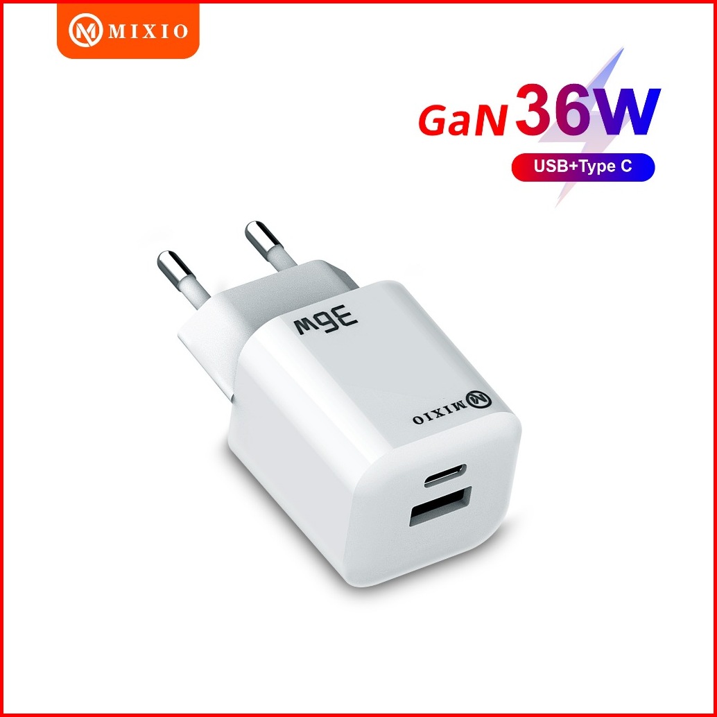 Mixio Charger 36w A C Mini Design Type C Usb Gan Pd Dual Port Fast Charging Adaptor Mc-04