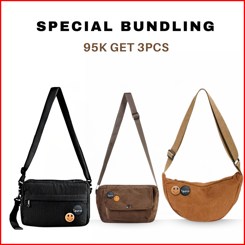Tapaxco New Bundling Exclusive Tas Selempang Pria Wanita 90k Get 3 Pcs Slingbag Corduroy