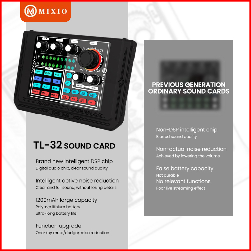 Mixio Tl-32 Soundcard Audio Mixer Recording Karaoke Bluetooth
