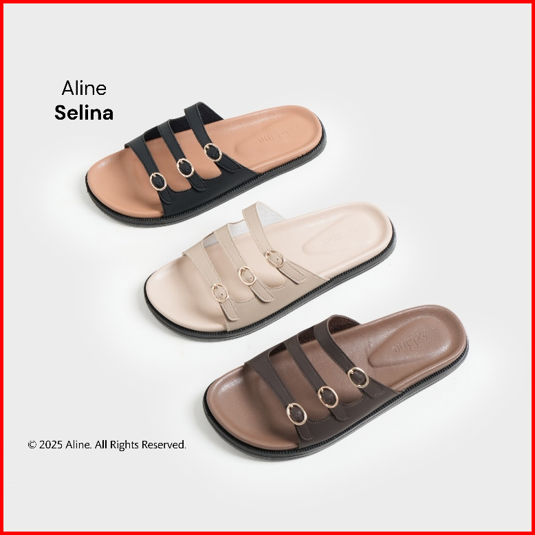 Aline Selina Sendal Slip On Birken Tali Tiga Casual Wanita
