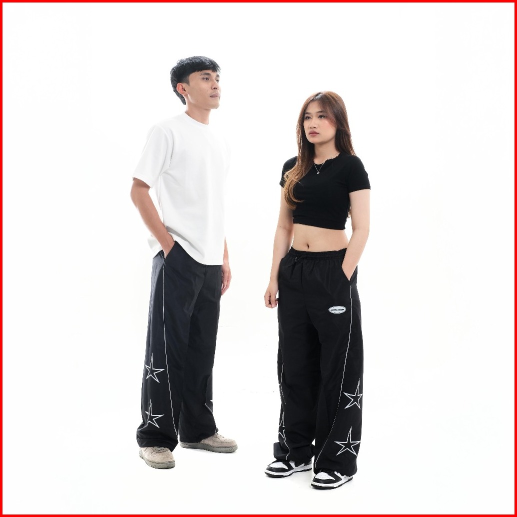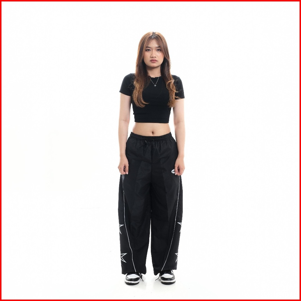 Unbroken Celana Parachute Star Panjang Loose Pants Hitam Basic Casual
