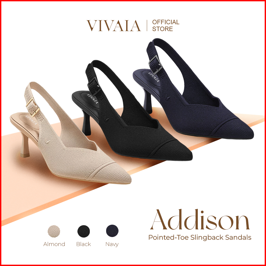 Vivaia Sepatu Wanita Pointed-toe Slingback Sandals Addison - Almond Black Navy