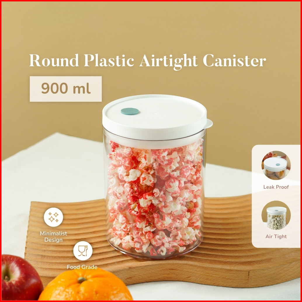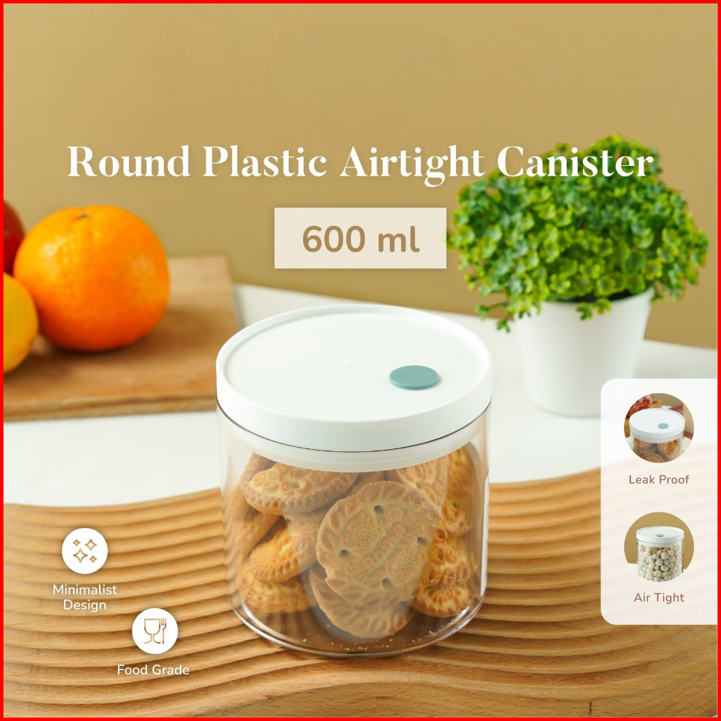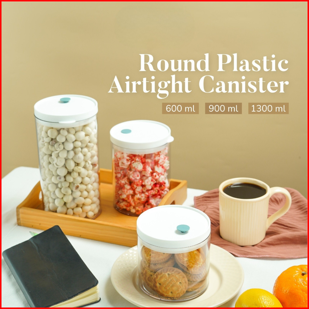 Toples Kedap Udara Bulat Kontainer Akrilik Penyimpanan Sereal Bijian Bumbu Dapur Wadah Serbaguna