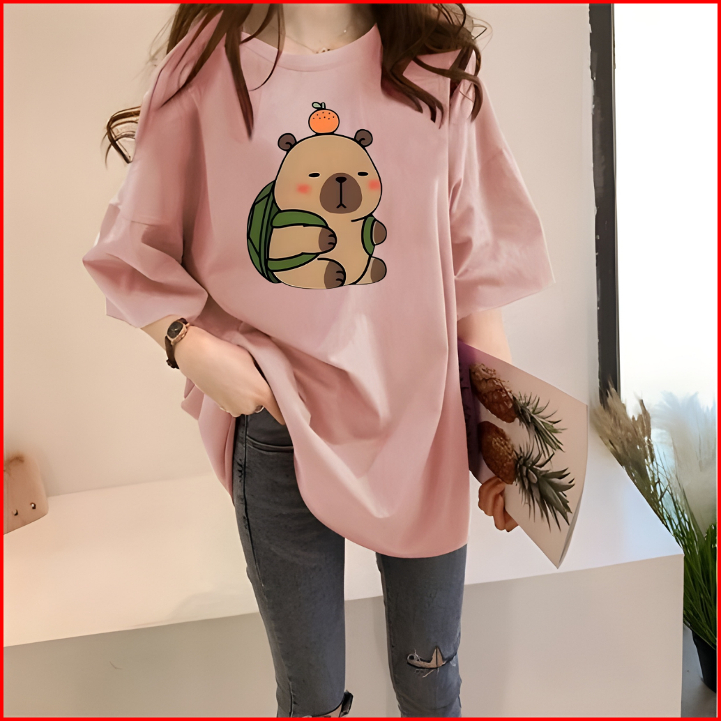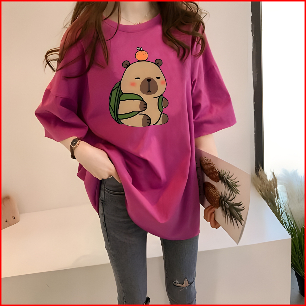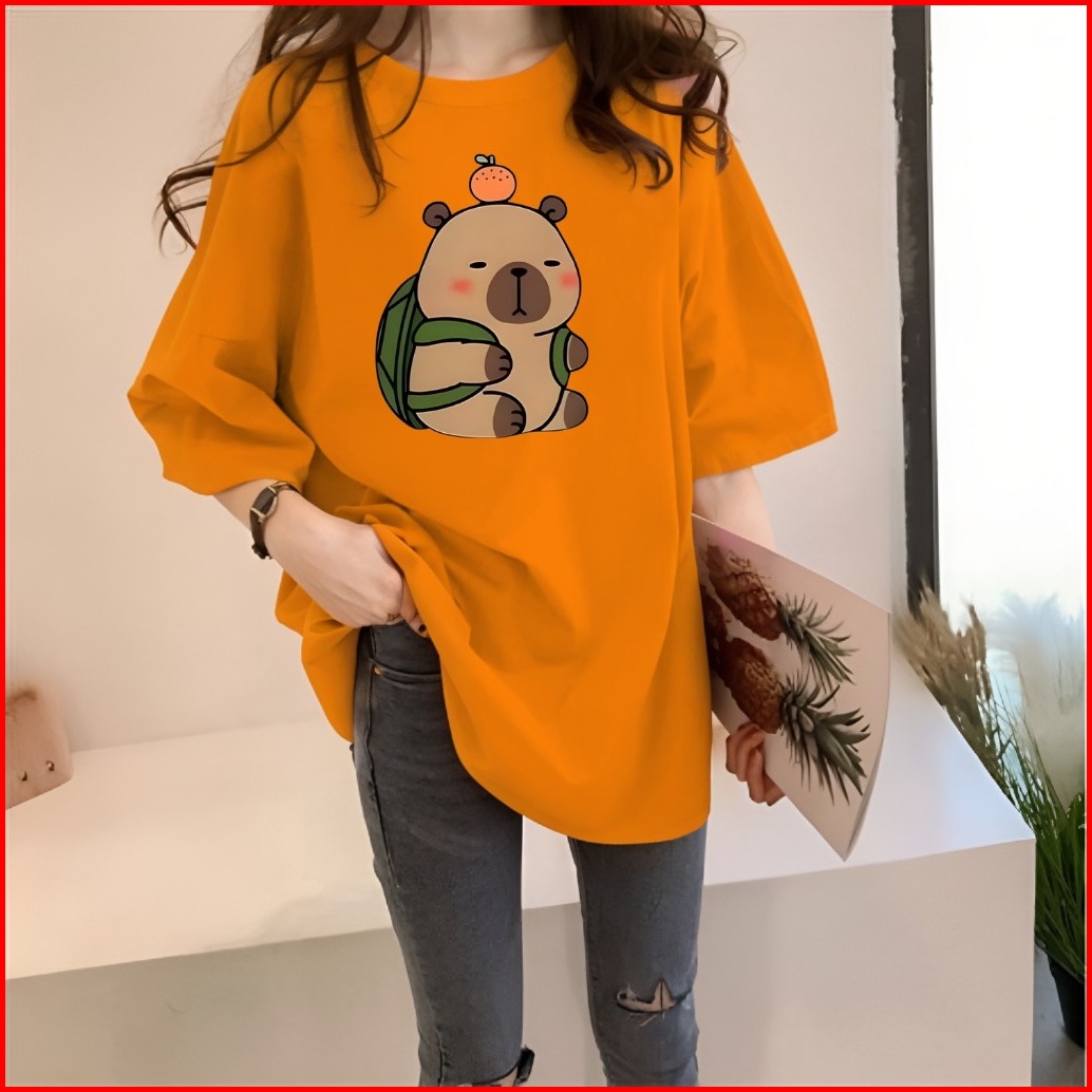 Kaos Oversize Wanita T-shirt Capybara Kaos Distro Wanita Kaos Streetwear Oversize Baju Kaos Distro Kaos Wanita Kaos Keki