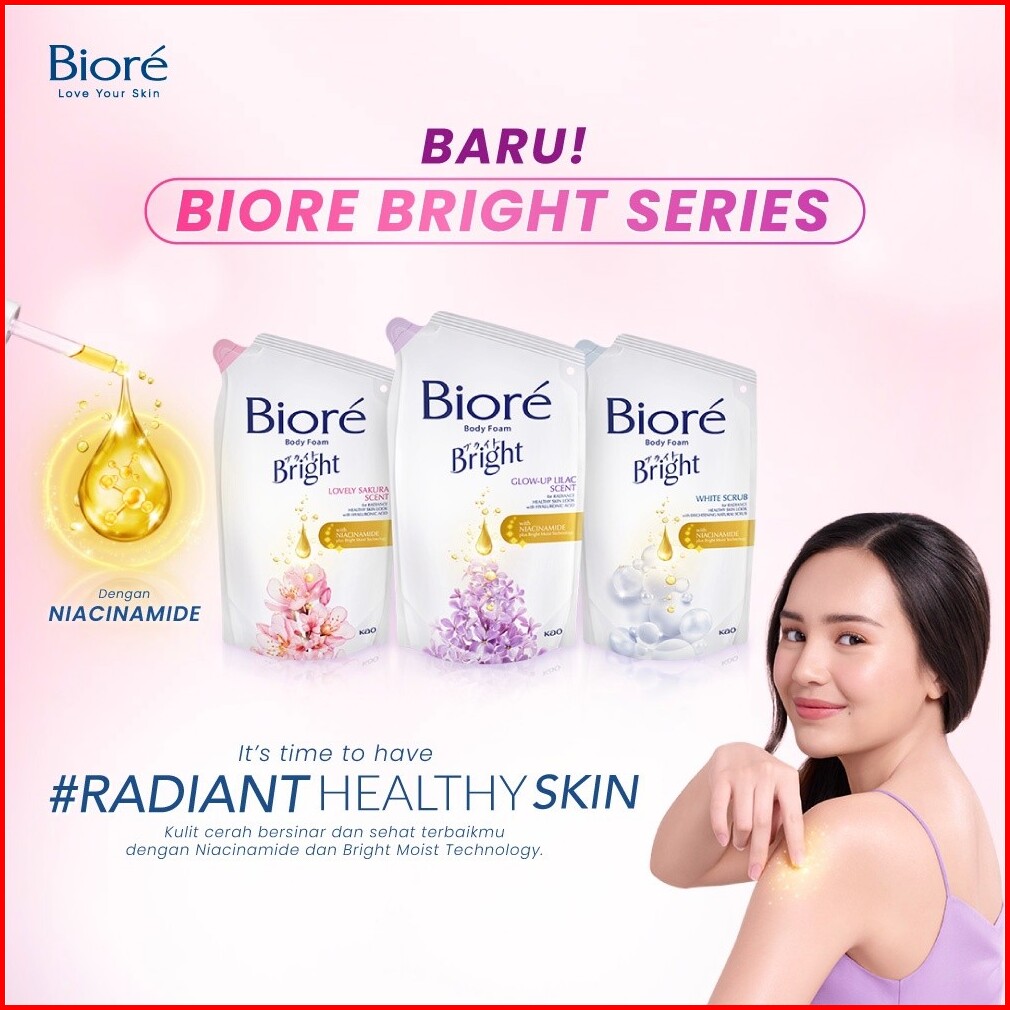 Biore Bright Sabun Mandi Cair Body Foam Lovely Sakura Pouch 800 Ml Four Pack
