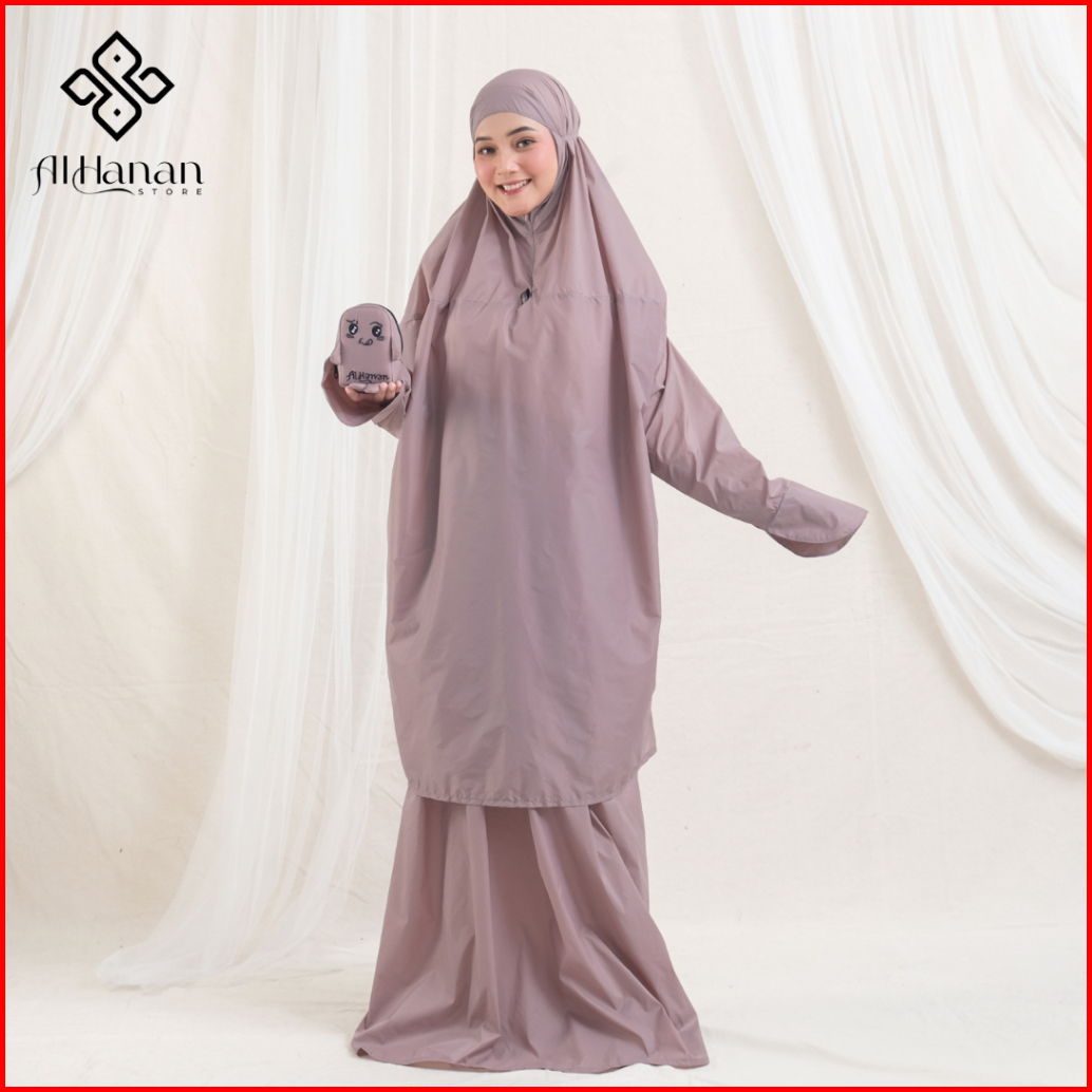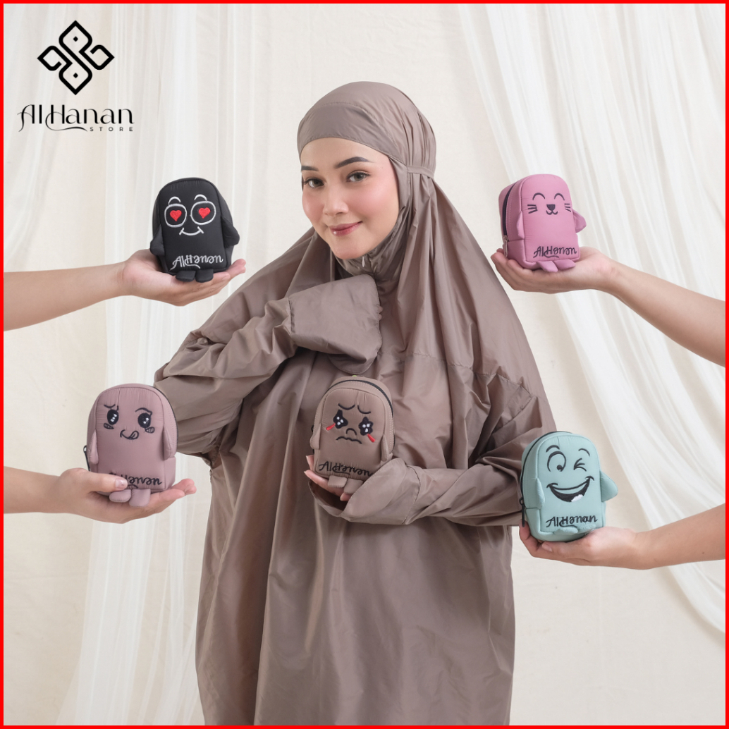 Alhanan - Mukena Mini Pouch Terkecil Parasut Premium Korea Daily 2in1 Series Travel Tas Kiyowo Lucu Mewah Motif Ibu Kost