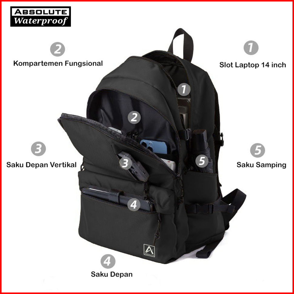 Tas Ransel Hitam Backpack Waterproof Tas Pria Wanita Waterproof Tas Ransel Pria Wanita Waterproof Tas Sekolah Waterproof