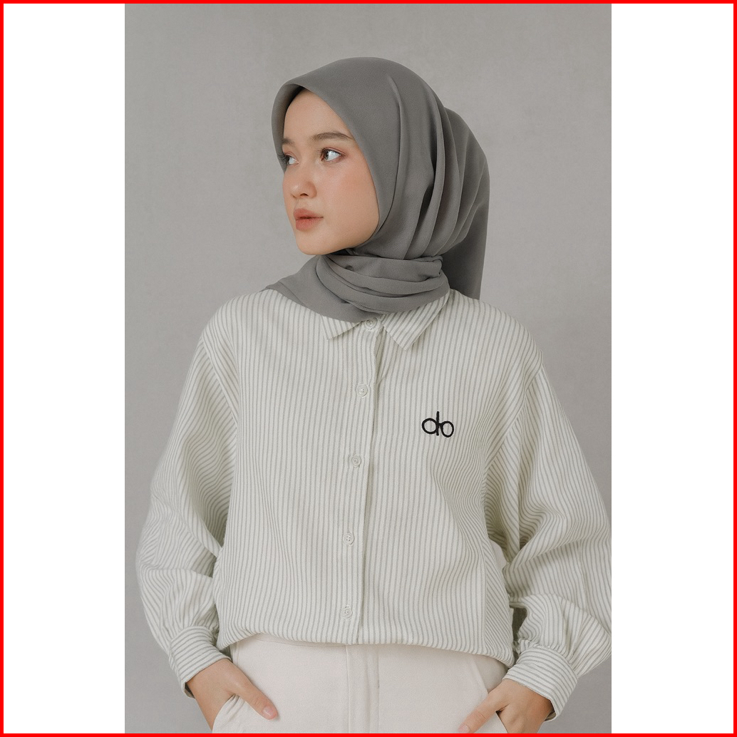 Qwencee.id - Kemeja Salur Wanita Blouse Bahan Suede Premium