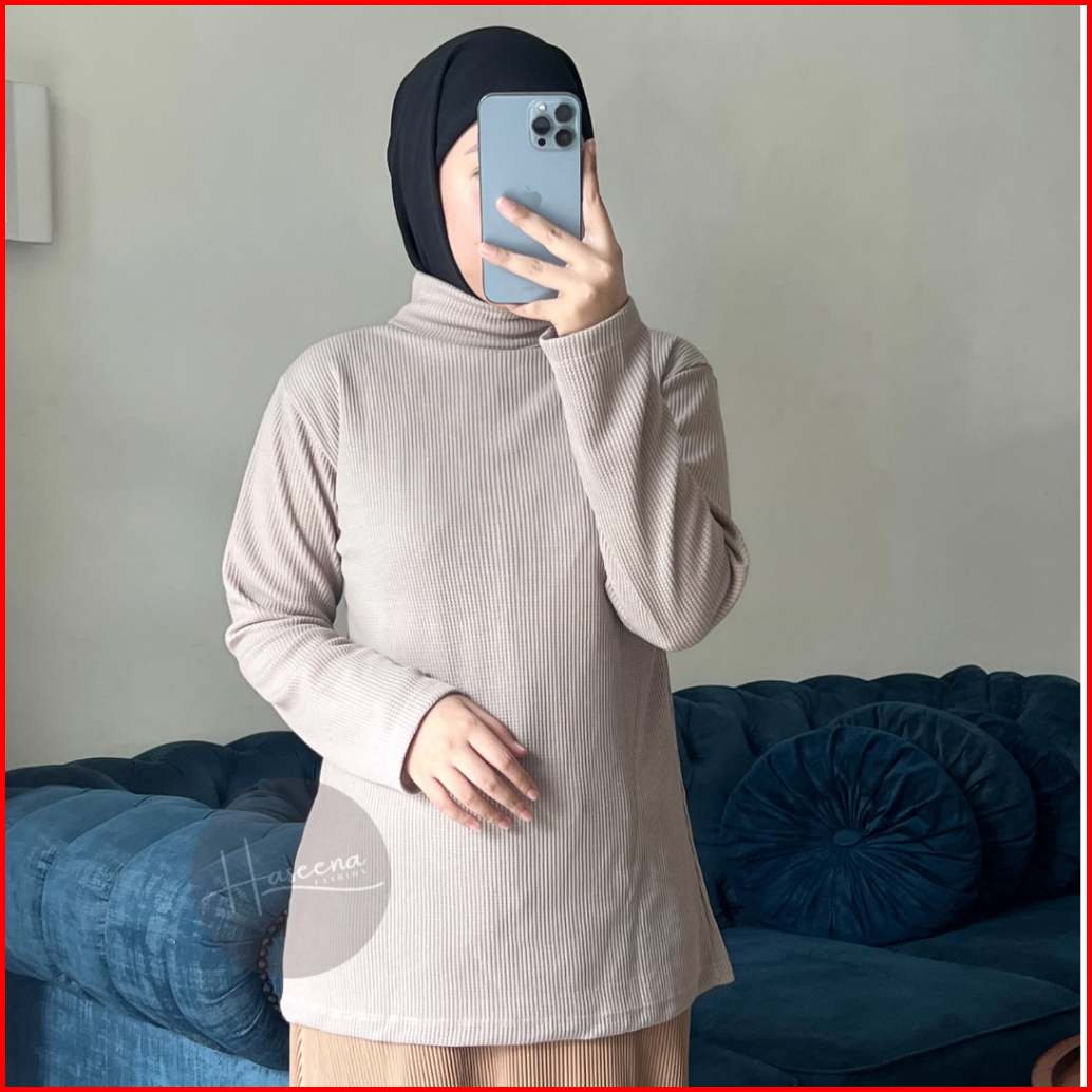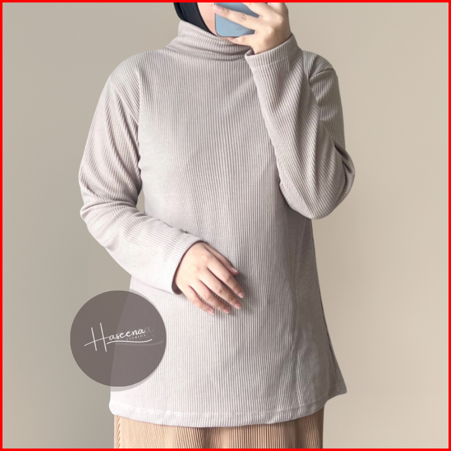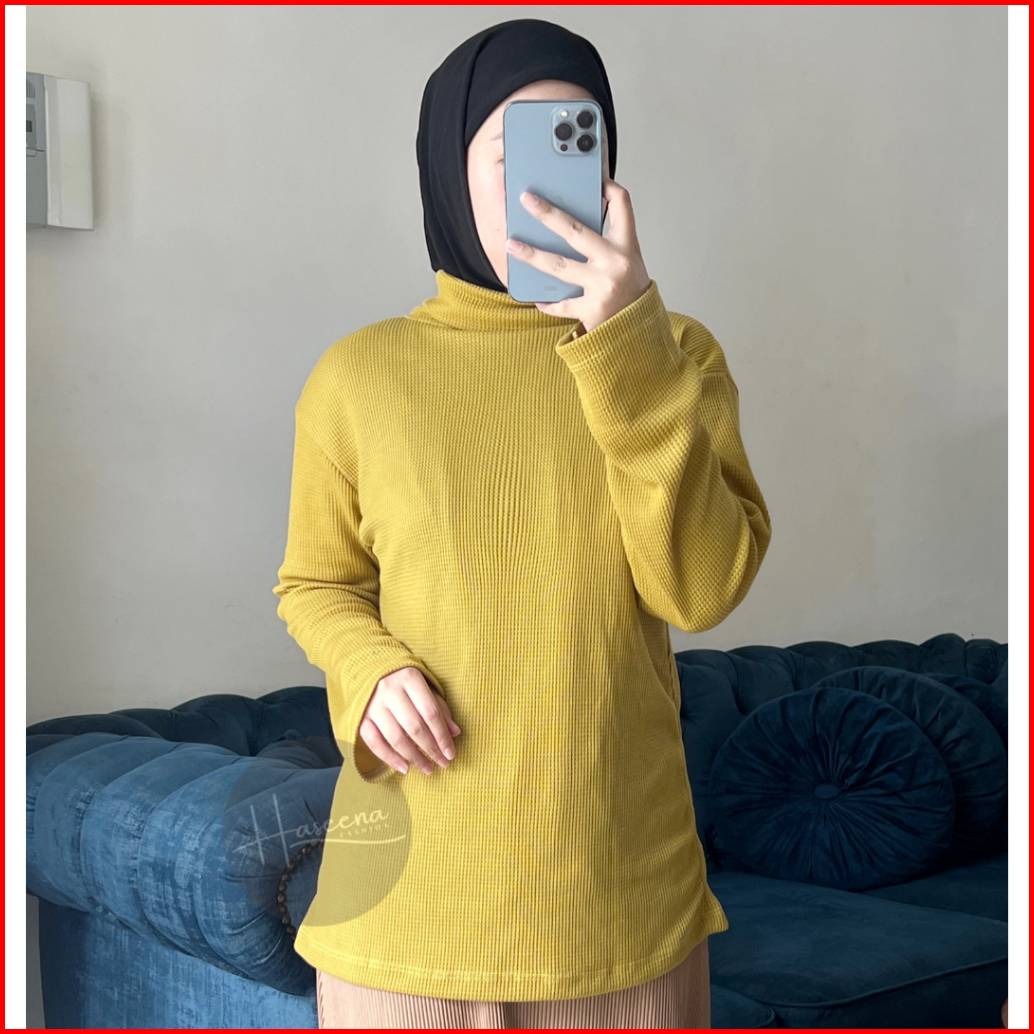 Haseena Atasan Knit Dania Wafle Kerah Tinggi Lengan Panjang Turtleneck Knitwear Tebal Lembut