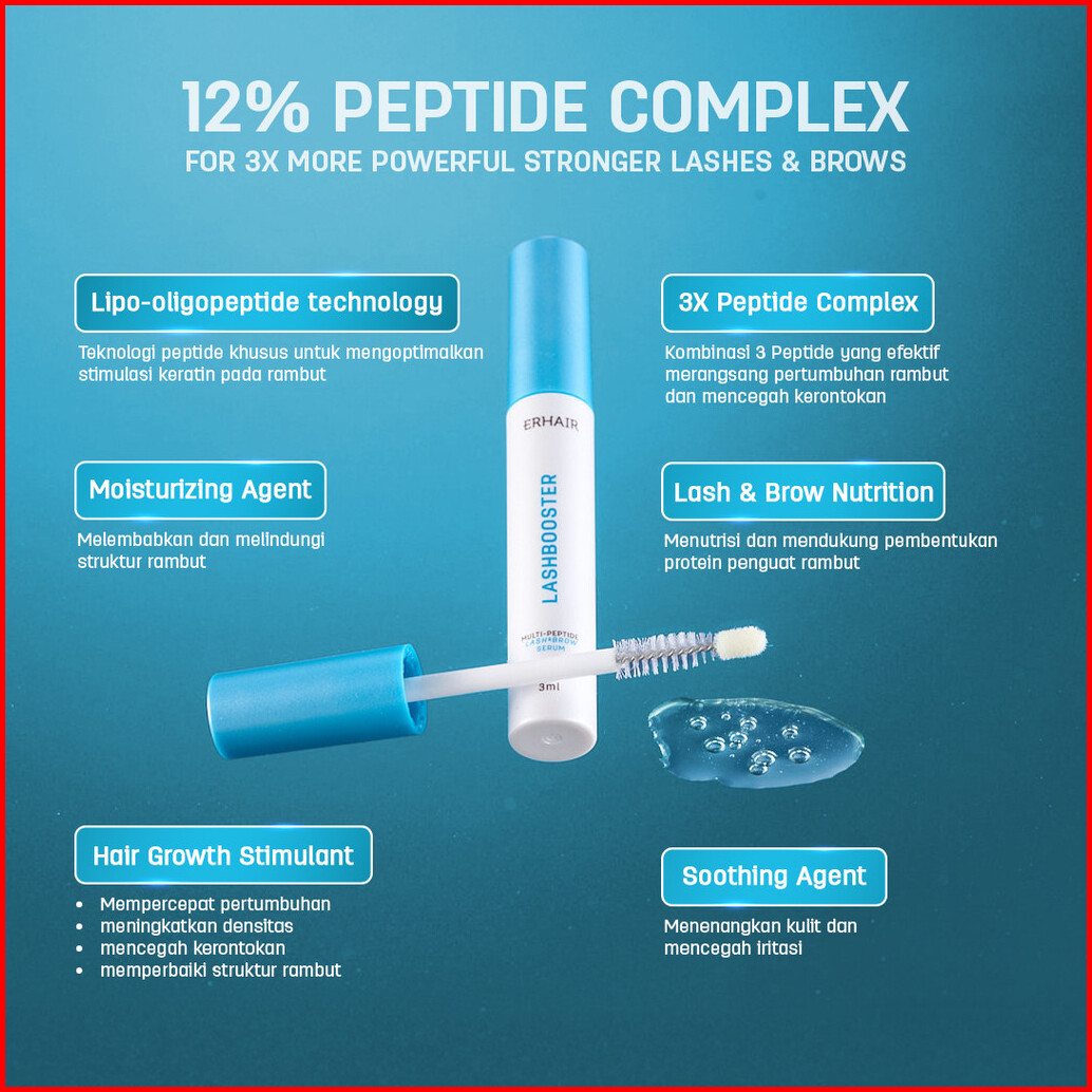 Erhair Lashbooster Multi-peptide Lash Brow Serum 3ml - Serum Alis Bulu Mata Rekomendasi Dermatologis 12 Peptide Complex