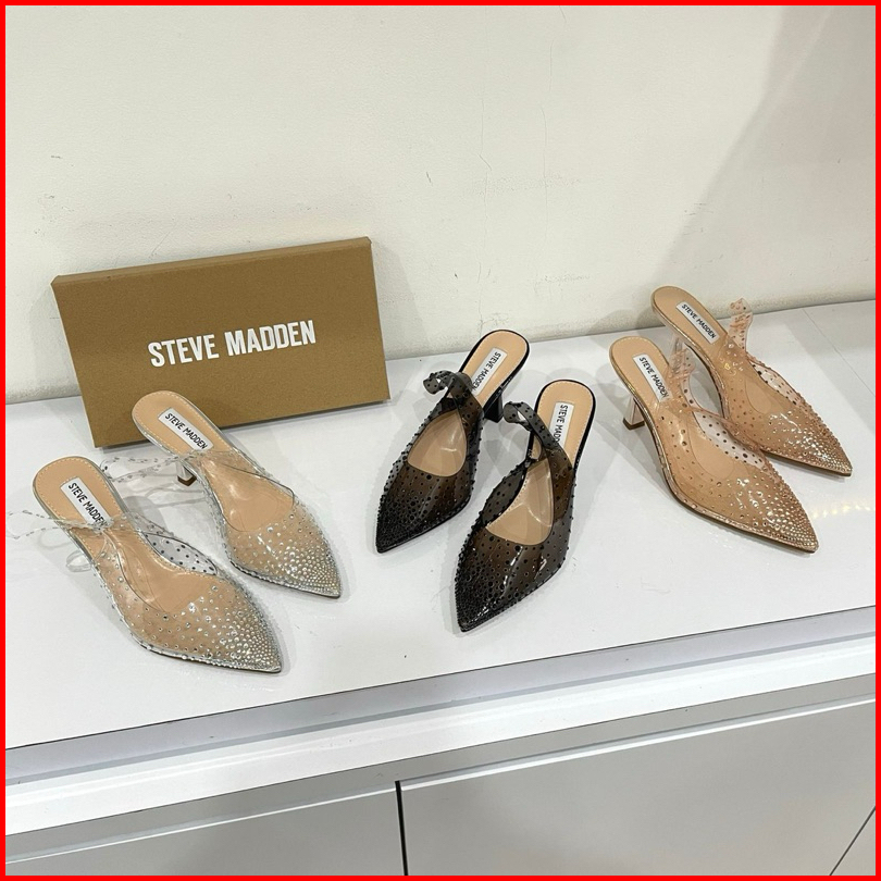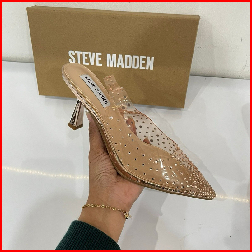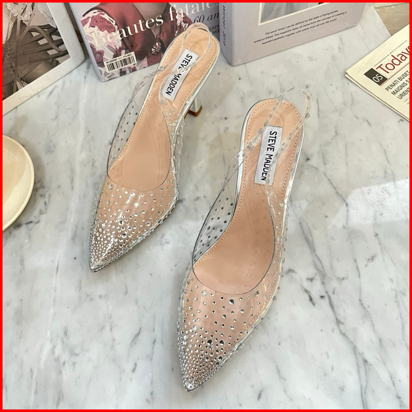 Transparant High Heels Steve Madden Import High Quality Fashion Shoes Sepatu Wanita Hak Tinggi Tali Belakang Sepatu Kaca