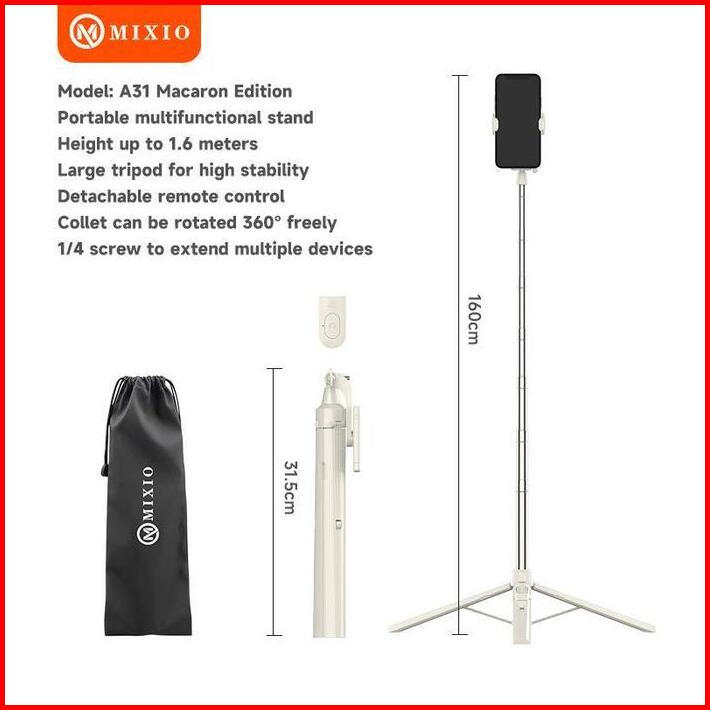 Mixio A31 Tongsis Remote Bluetooth Wireless Selfie Stick Tripod - 160cm - A31 - 160cm