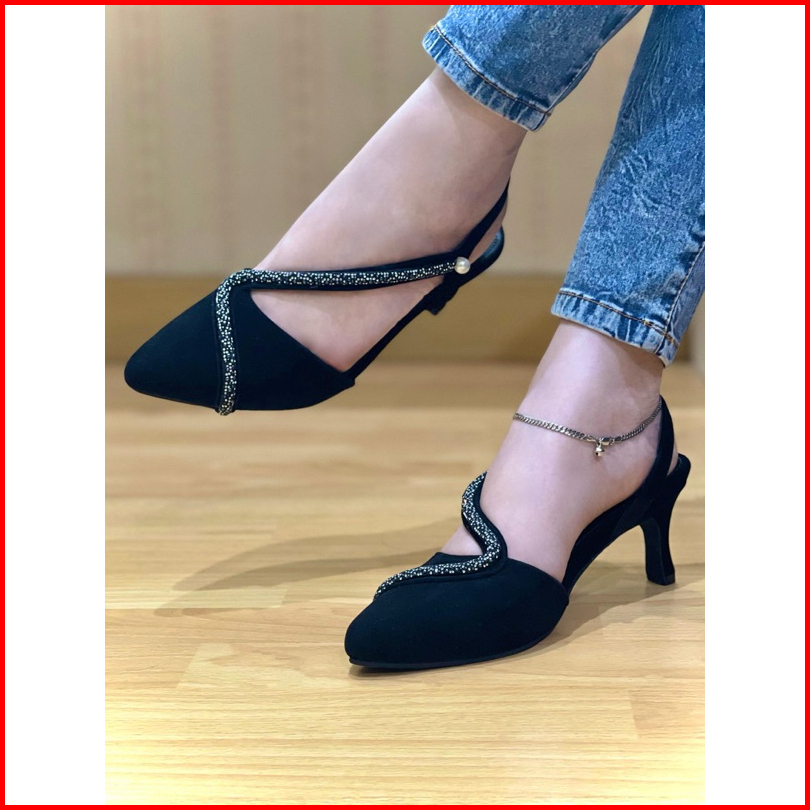 Zr Jasmine Box Polos - Sepatu Heels Wanita 7cm Sandal Permata Blink-blink Tali