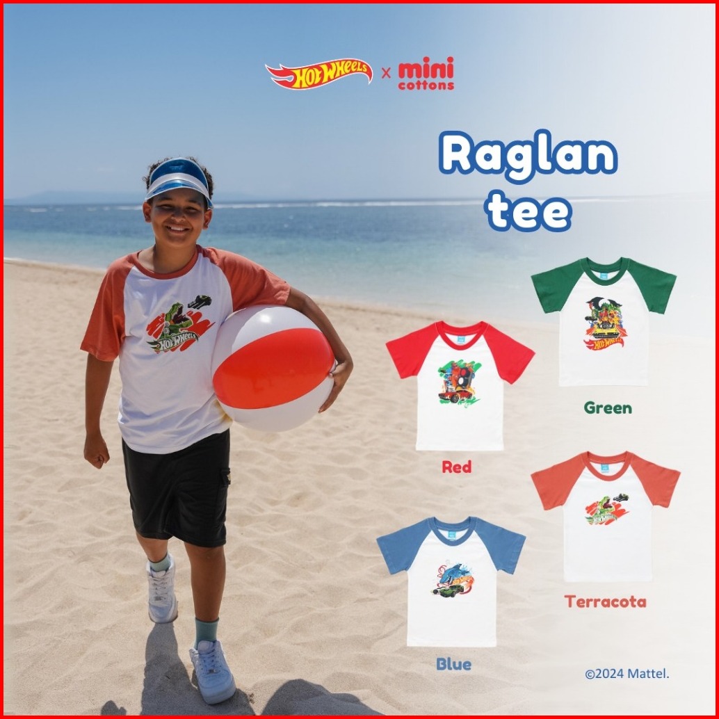 Sale Hot Wheels X Minicottons Raglan Graphic Tshirt Kaos Baju Anak Laki Laki 2-12 Tahun