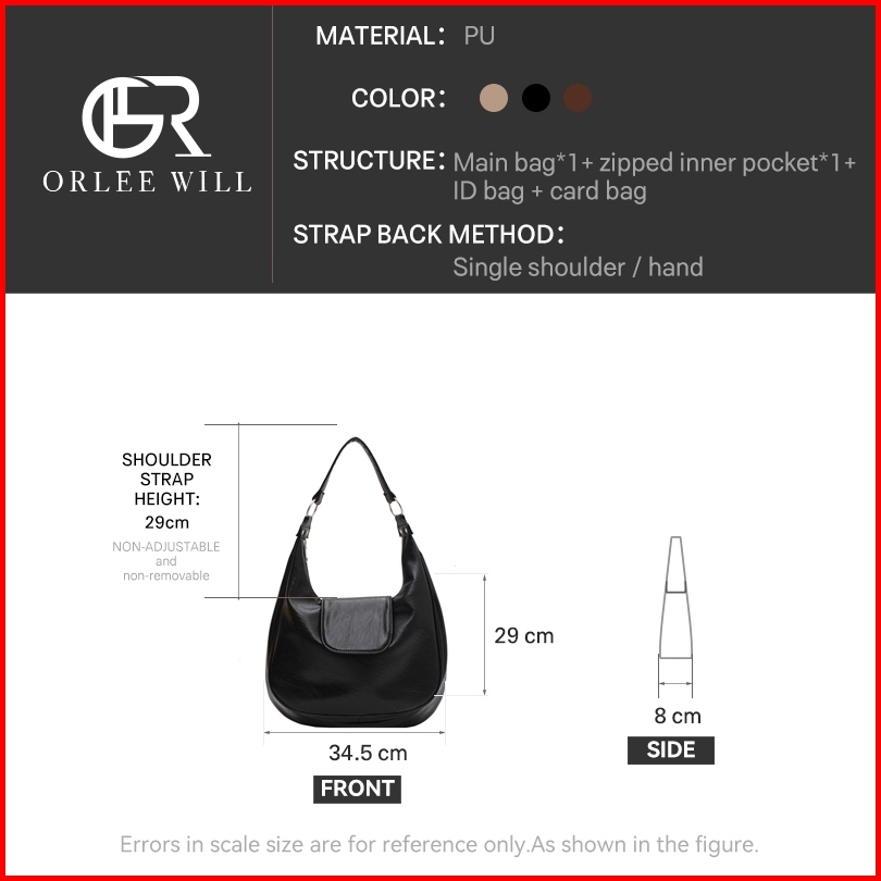 Orlee Will Tas Totebag Kuliah Tas Hobo Bag Shoulder Bag Wanita Selempang Kulit Import Korea Tas Ketiak Bahu Sling Bag