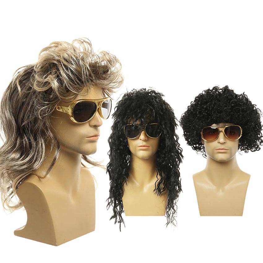 Wig Rocker Punk Wig Kribo Wig Brokoli Rambut Palsu Keriting Panjang Pria Wanita Pesta Cosplay Halloween Heavy Metal Wig