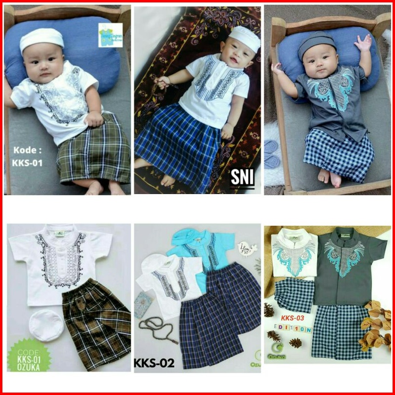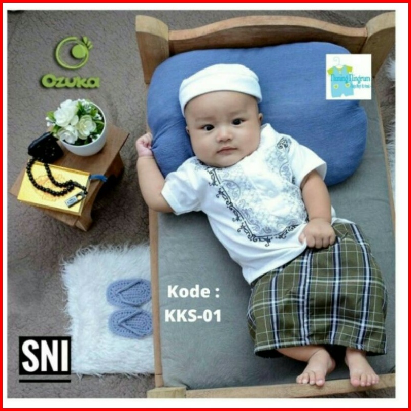 Baju Koko Bayi Laki-laki Ozuka Setelan Aqiqah Sarung Dan Peci Sarkoci