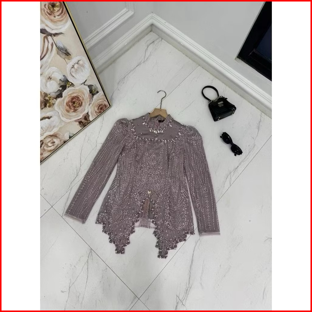 Rania Blouse Kebaya Wanita Brukat Lace Lamaran Tunangan Wisuda Kondangan Lengan Panjang Material Silk Lace