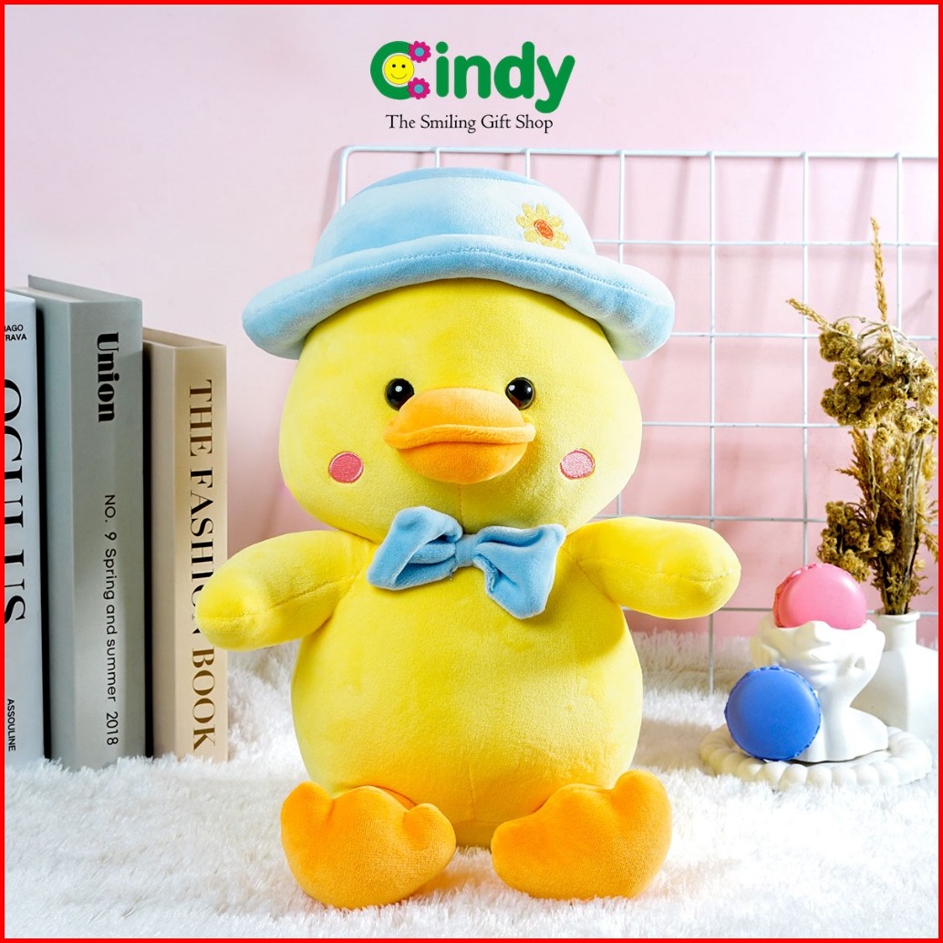 Cindy Boneka Bebek Pierre Lucu Lembut Duck Plush Kuning Dengan Topi Syal Pink Untuk Kado Anak
