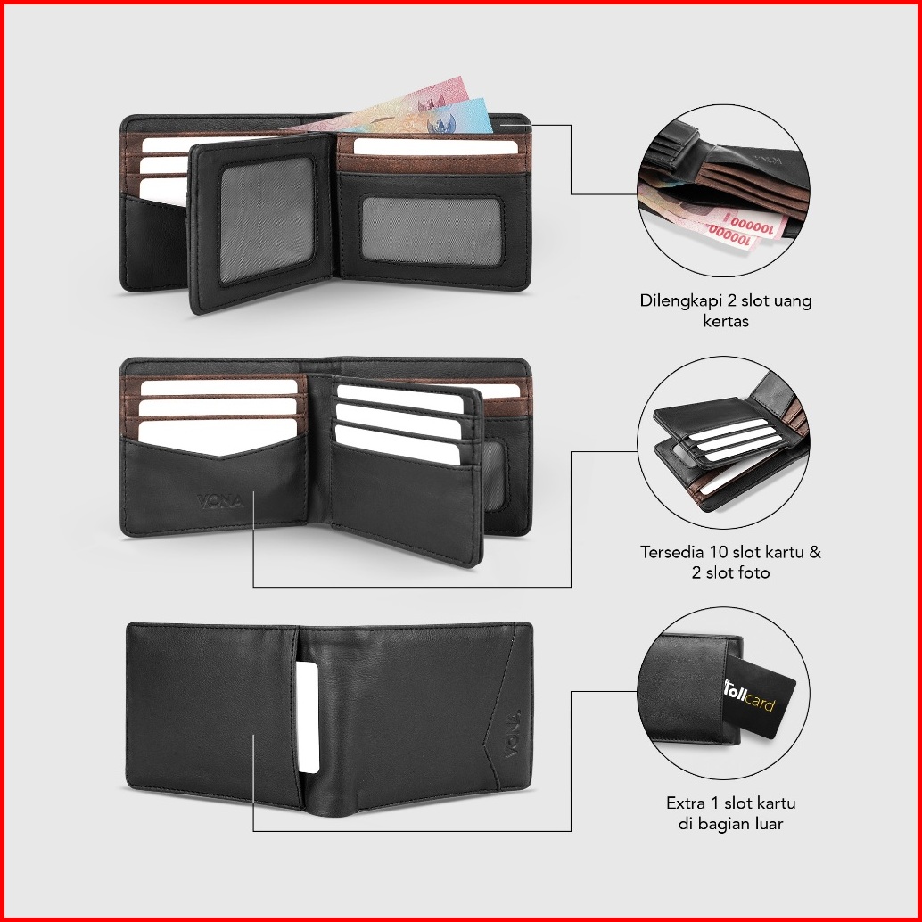 Vona Rory Wallet - Dompet Pria Kulit Pu Premium Pendek Lipat Tiga Dengan Extra Slot Kartu
