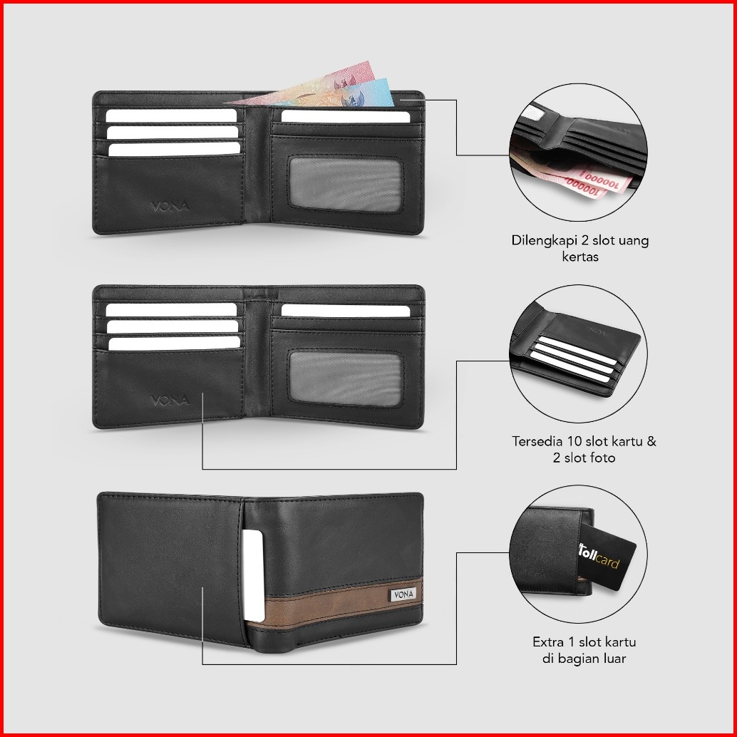 Vona Atlas Wallet - Dompet Pria Lipat Dua Kombinasi Warna Kulit Sintetis