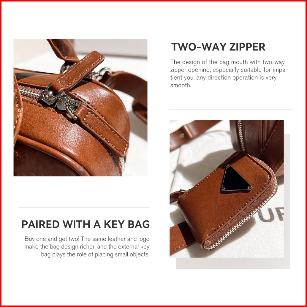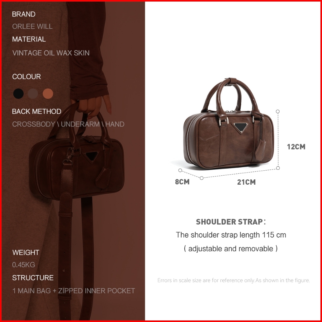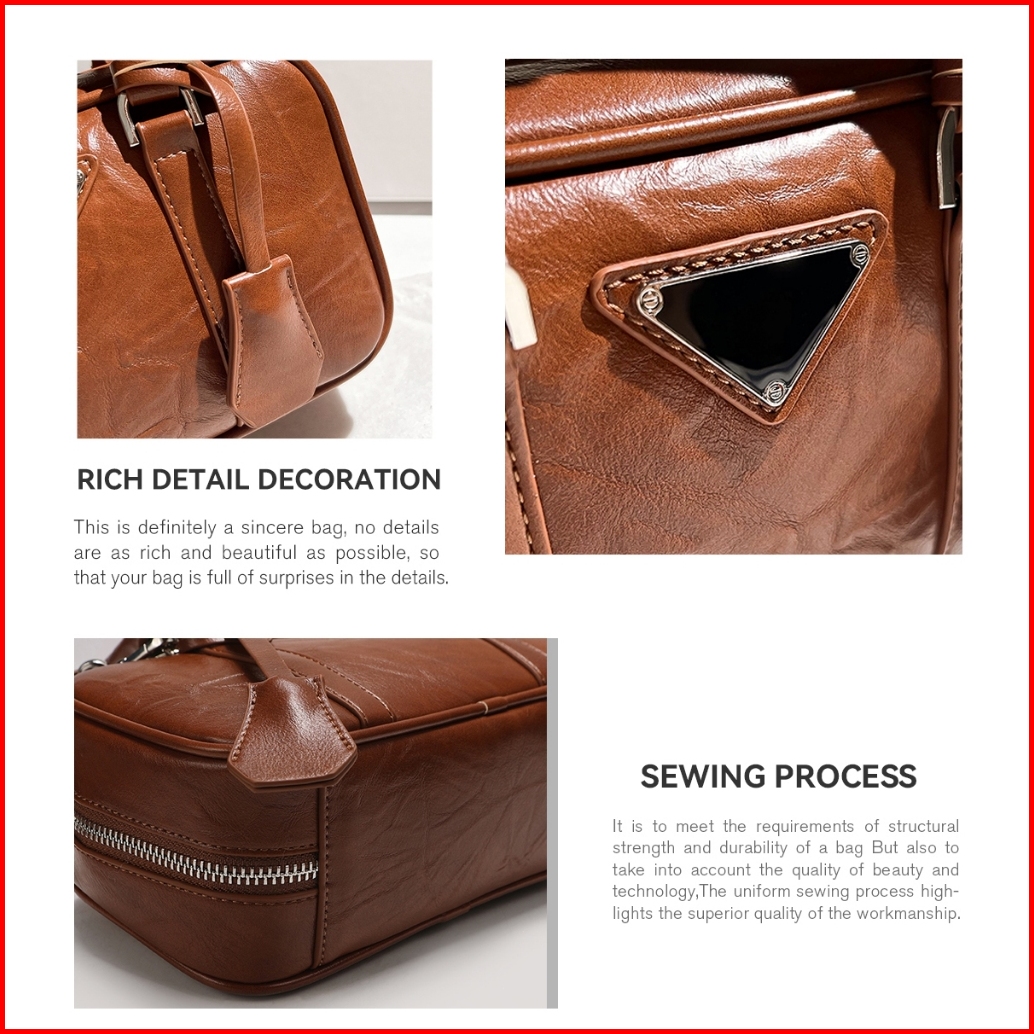Tas Wanita Tas Bowling Kulit Lembut Retro Tas Tas Desain Khusus Tas Komuter Tas Selempang Kulit Lilin Minyak