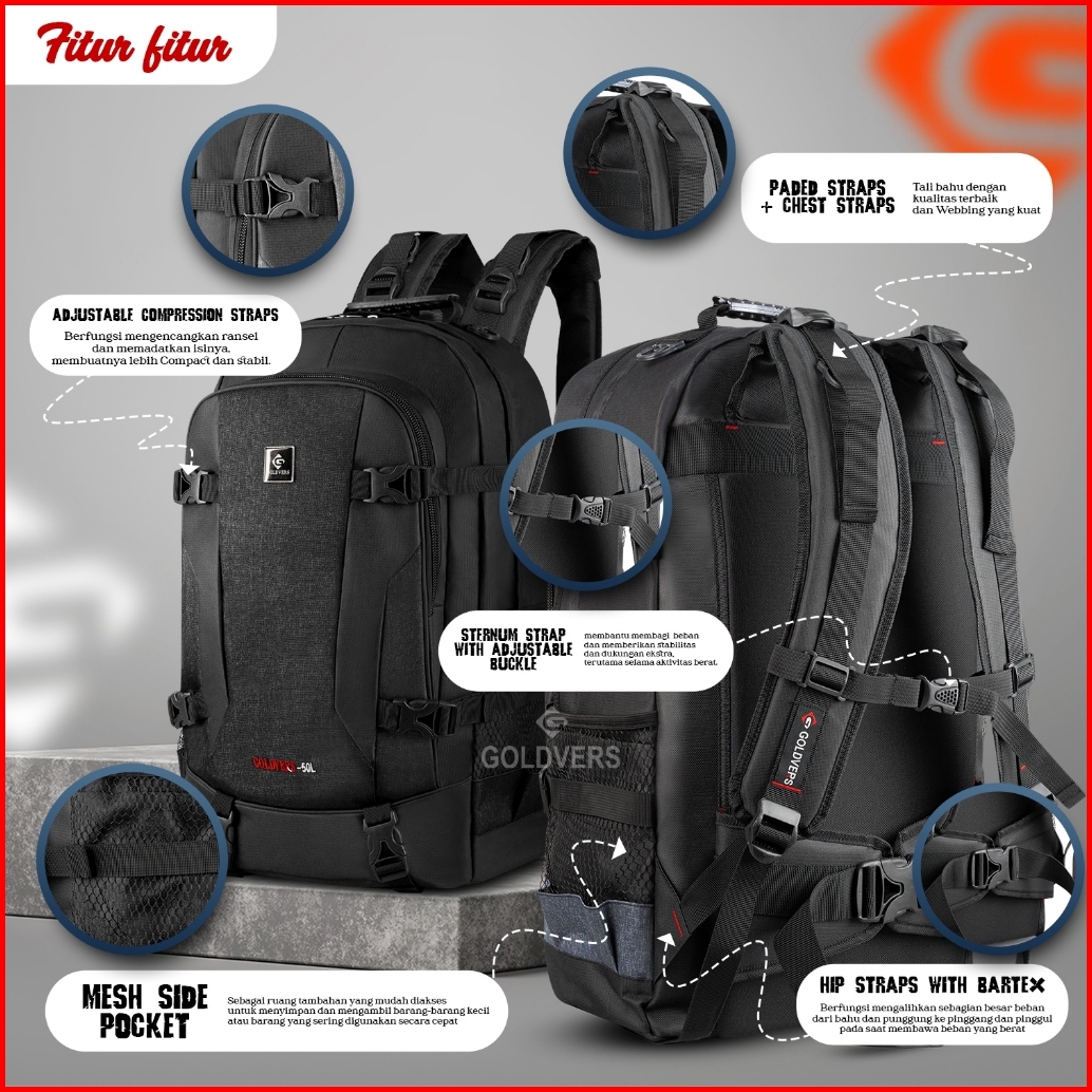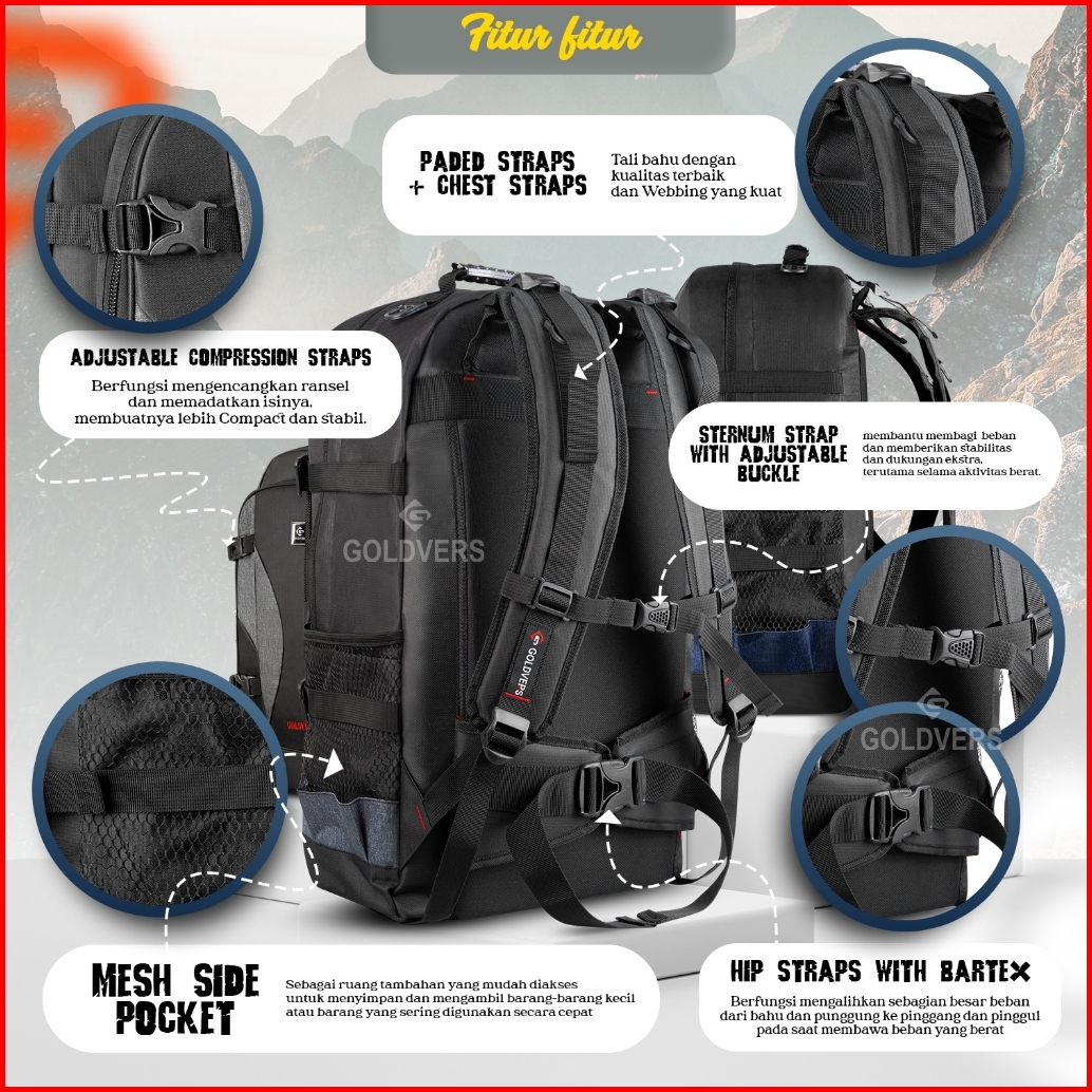 Goldvers - Storm Grime Ransel Pria Tas Carrier Backpack Gunung Hiking Tas Travelling Tas Travel Tas Backpacker Travel Ba