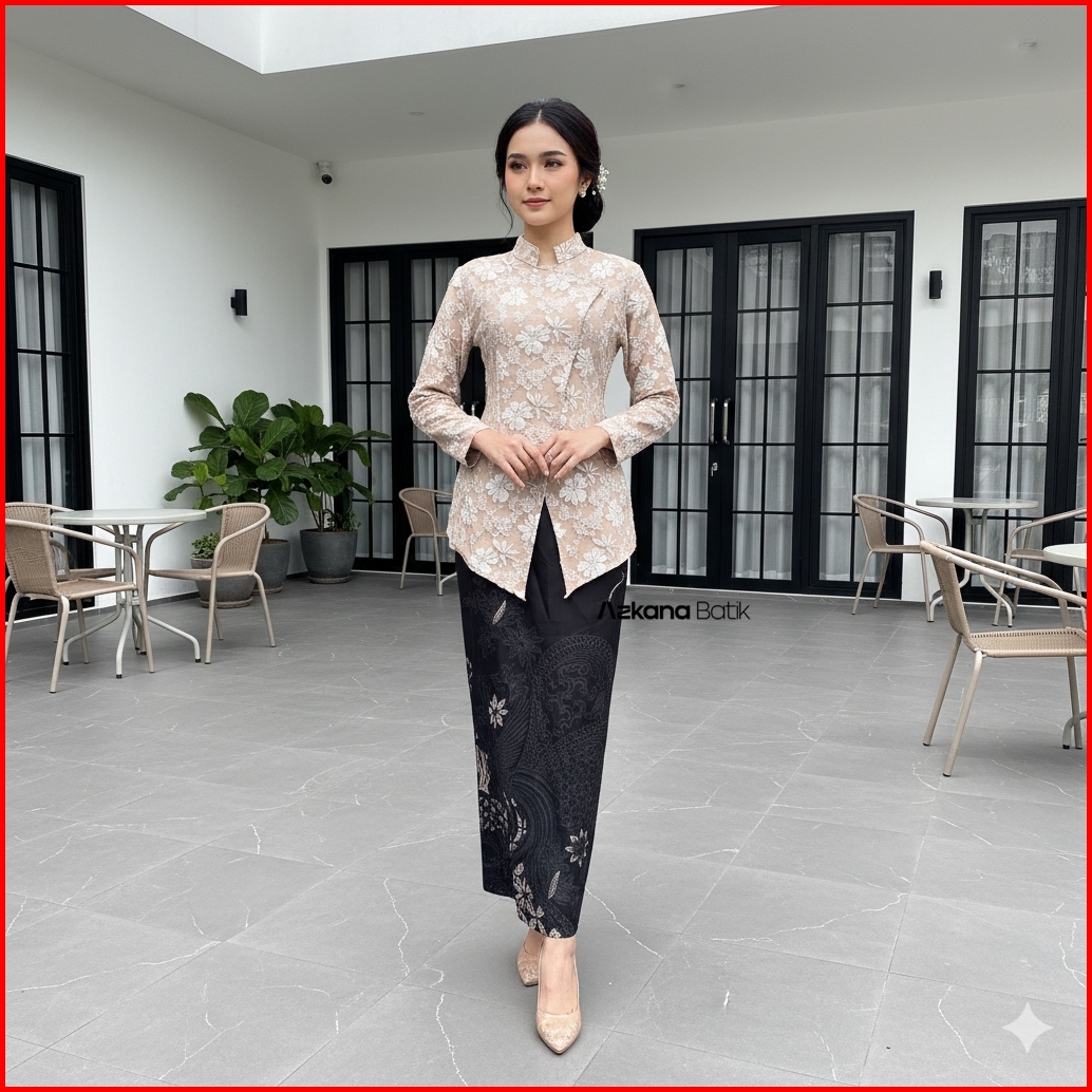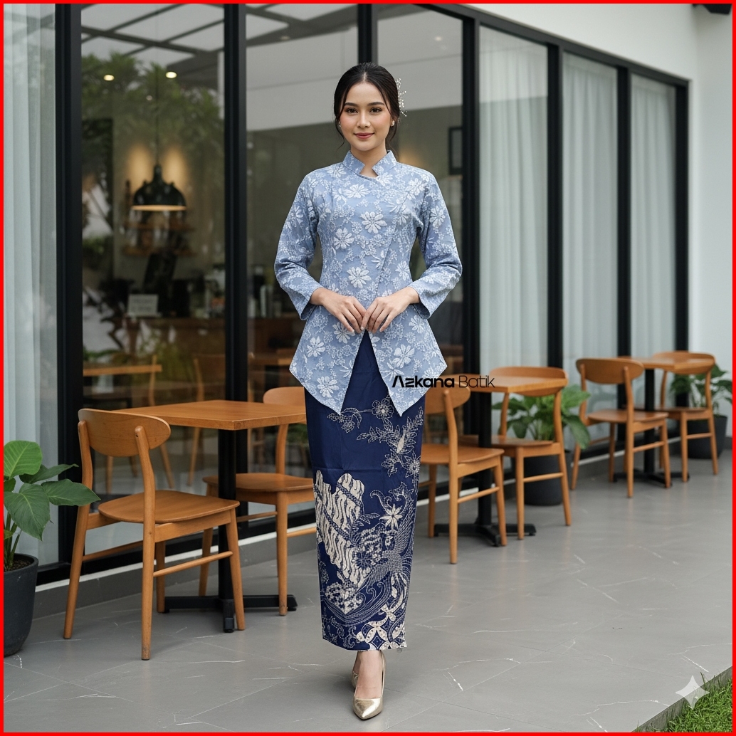 Azkana Batik - Setelan Kebaya Janggan Modern Rok Batik Katun Batik Halus Baju Pesta Set Kondangan Wanita Kekinian Ootd C