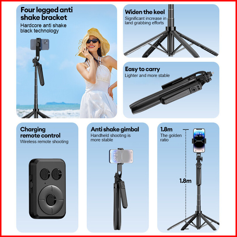 Tongsis Tripod Bluetooth 180cm Paduan Aluminium Selfie Stick 4-leg Stand Remote Tripod Hp Kamera Dslr Tongsis Dengan Con