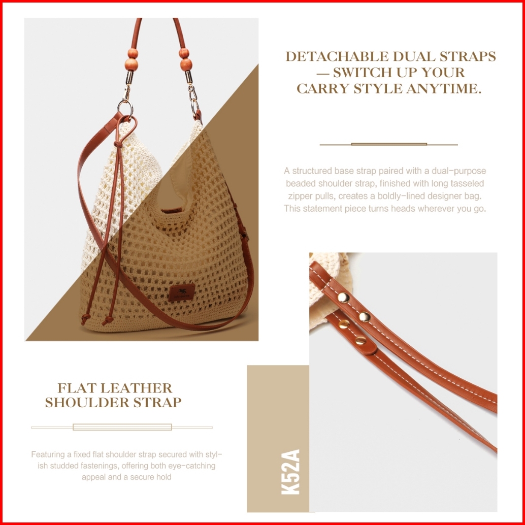 Tas Tote Tas Anyaman Wanita Hobo Bag Tas Rajut Liburan Bohemia Ol-k52