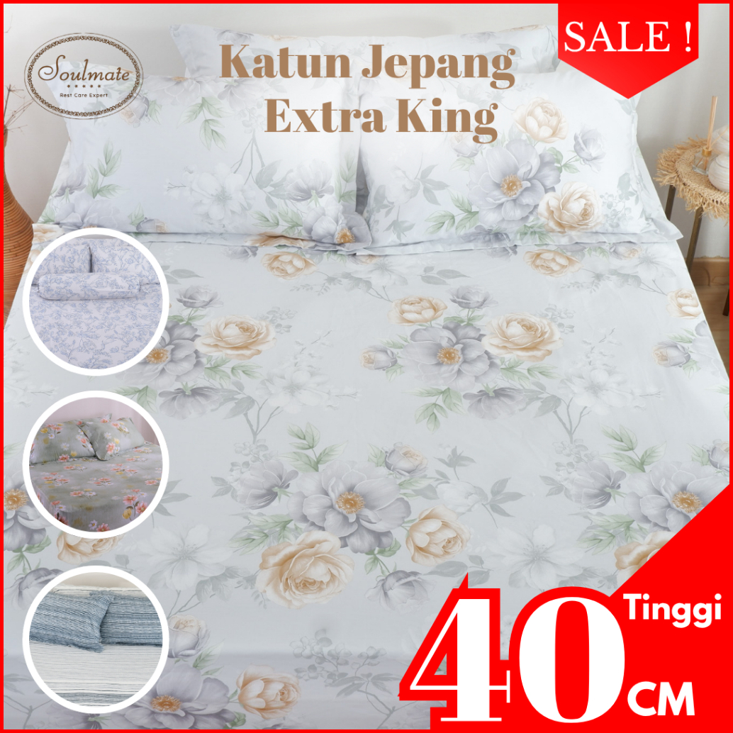 Sale Soulmate Sprei Katun Jepang Extra King Size 200x200 Tinggi 40cm