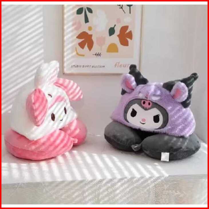 Bantal Leher Cartoon Sanrio Kuromi Pochacco Cinnamoroll My Melody Plush Hooded Kawaii New