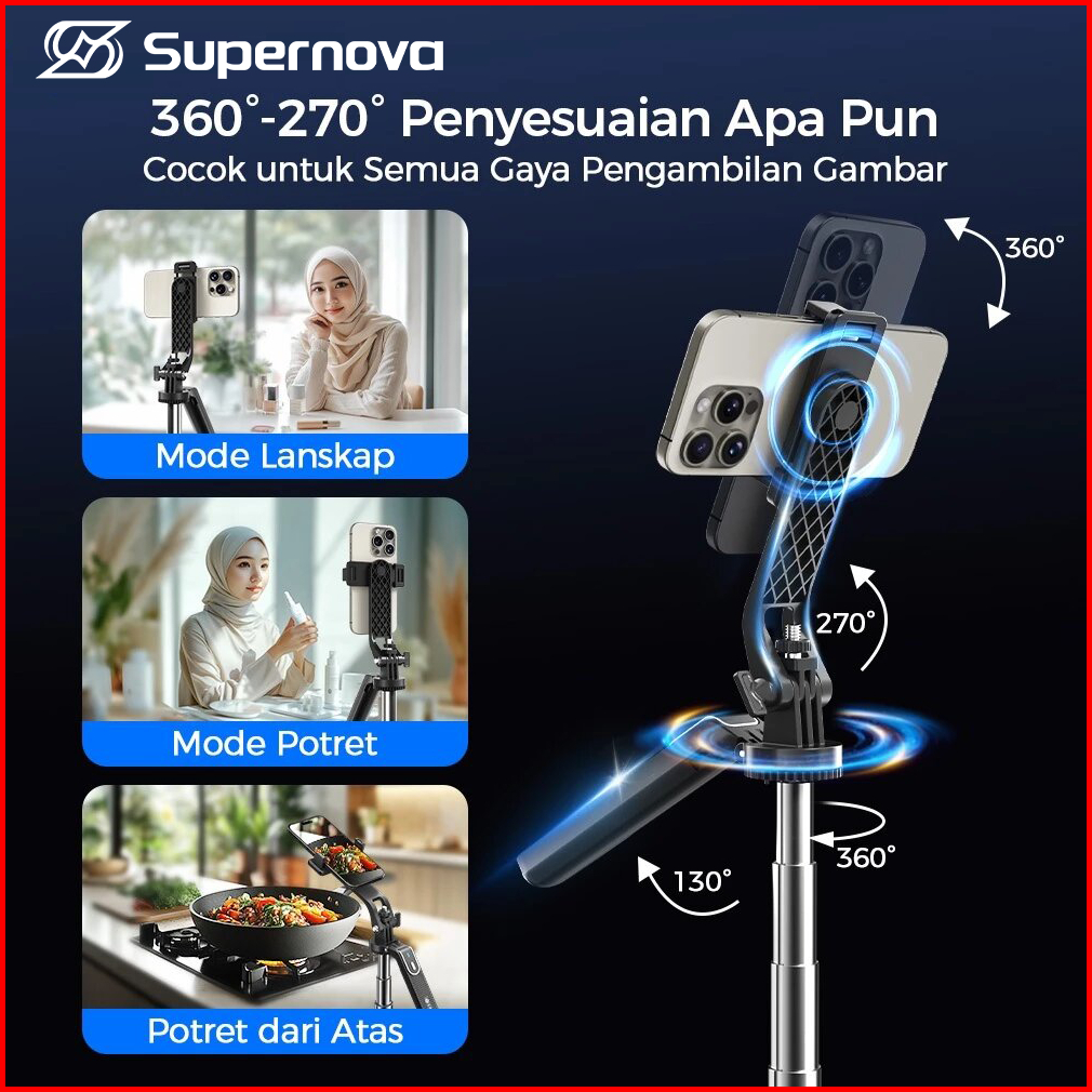 Supernova P180 4 1 Tongsis Tripod Bluetooth Quadpod 1.8m Konten Kreator Tripod Portable Fill Light Selfie Stick Bluetoot