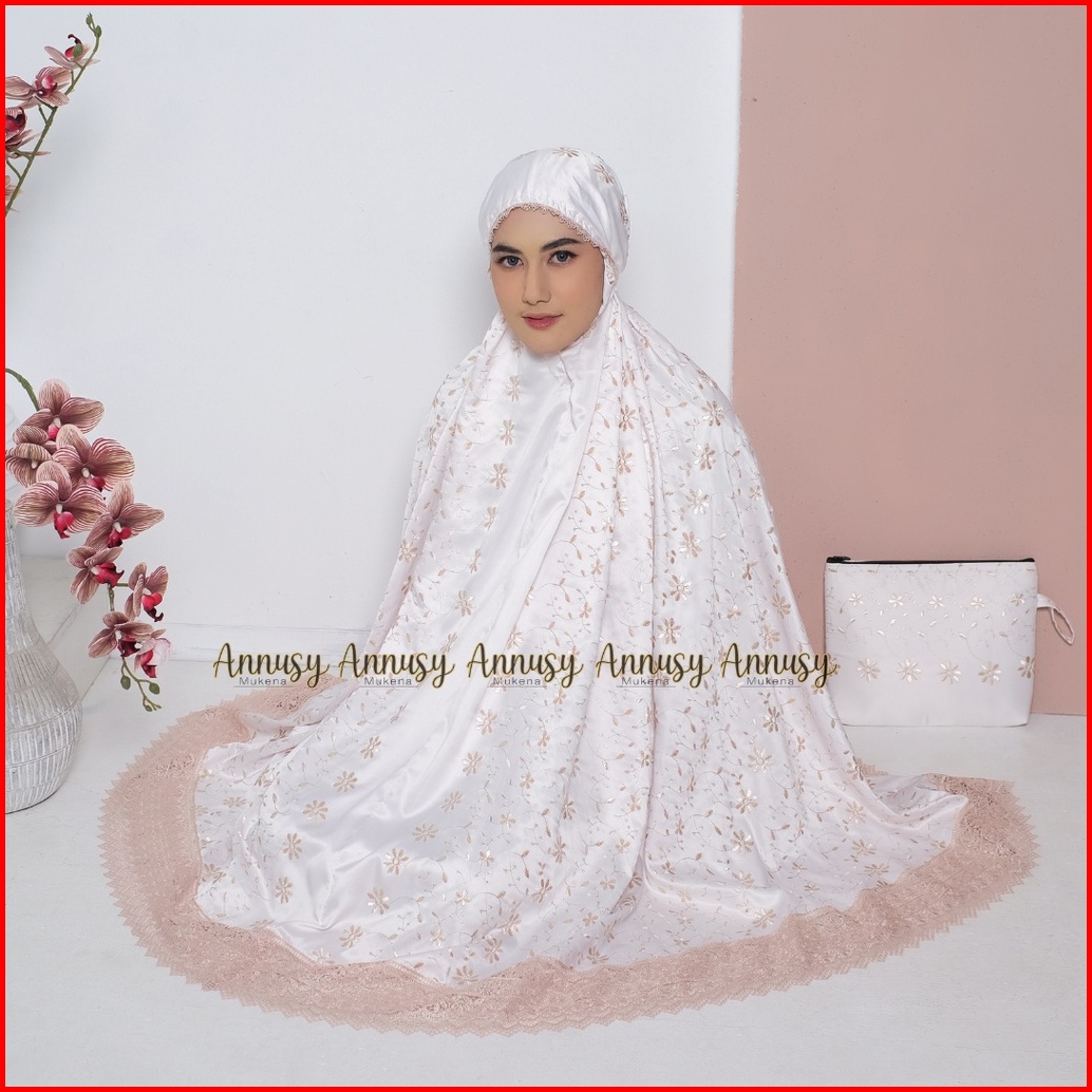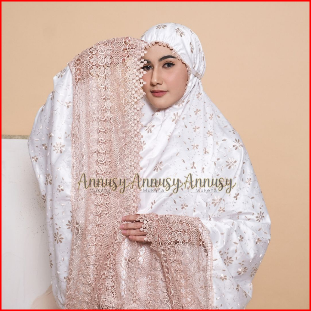 Annusy - Mukena Dewasa Jumbo Sutra Millo Prada Mewah Full Bordir