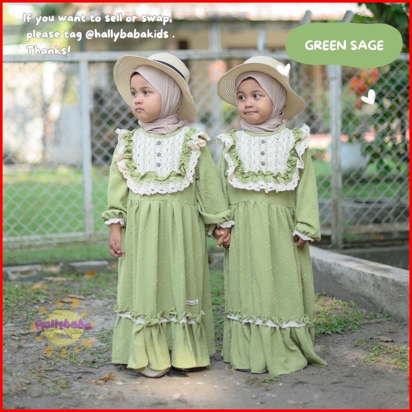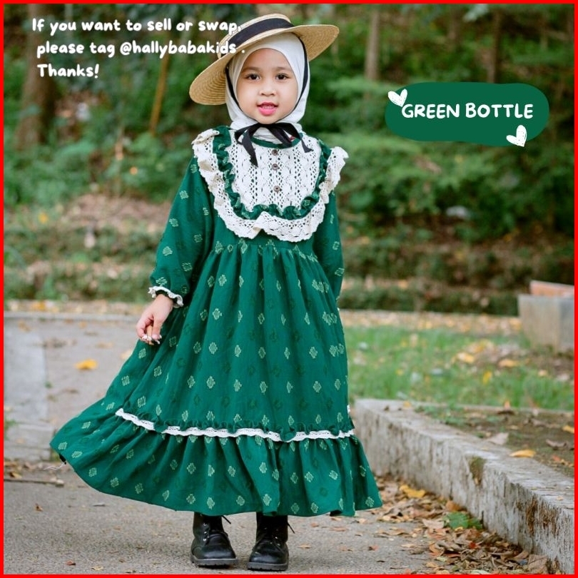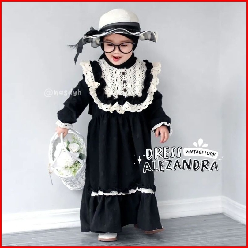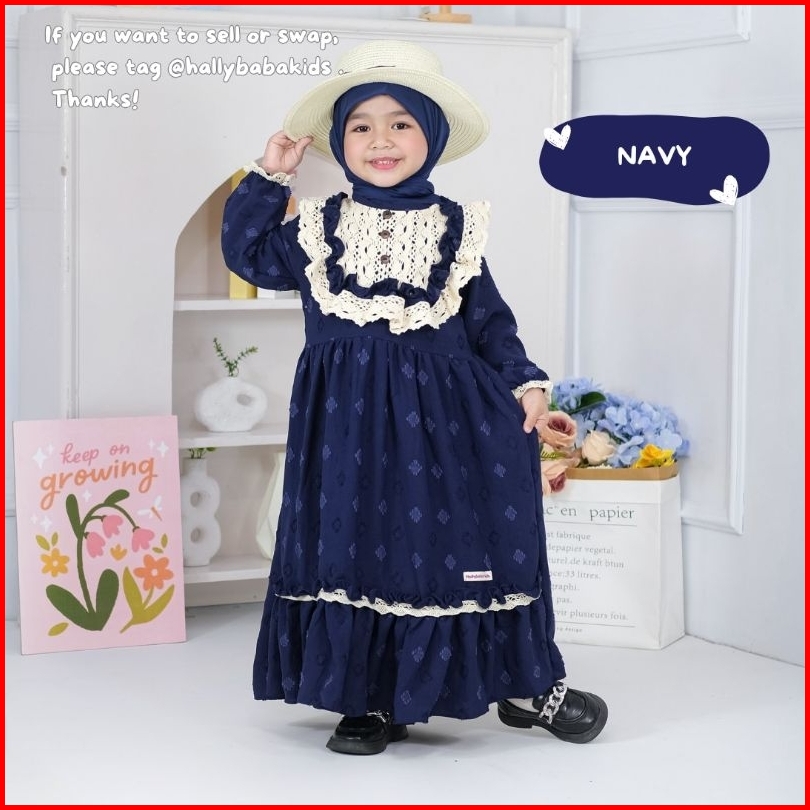 Hallybaba Kids - Gamis Anak Perempuan Alezandra Junior 5-10th Viral Gamis Vintage Anak Exclusive Limited Edition