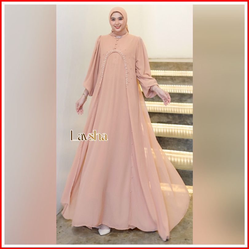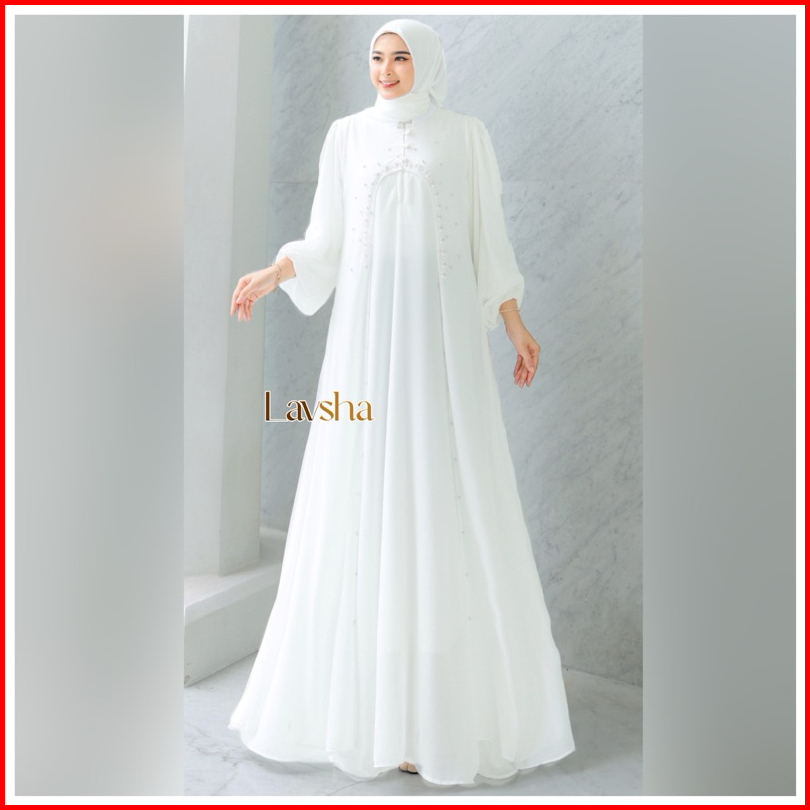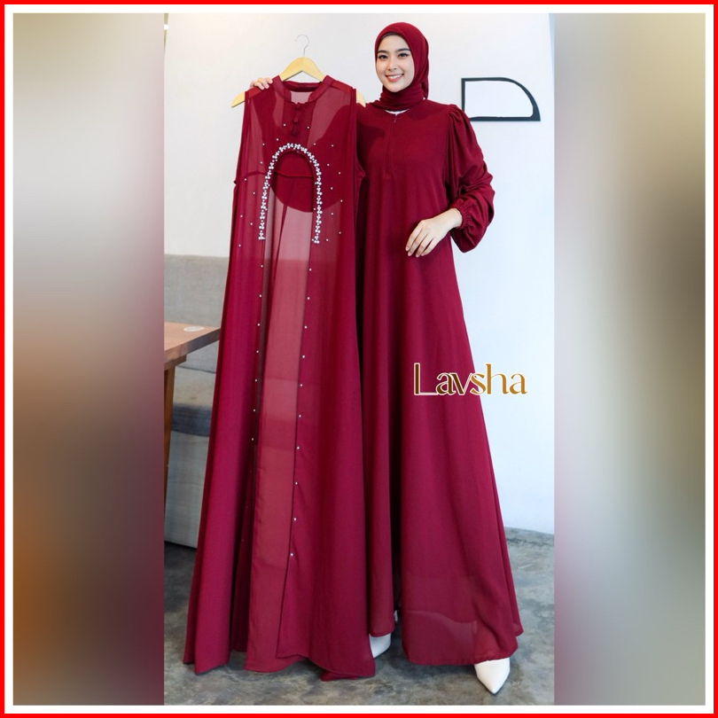 Mecca Set Inner Outer Hijab - Raya Series Gamis Wanita Muslim Ceruty Outer Payet Polos Abaya
