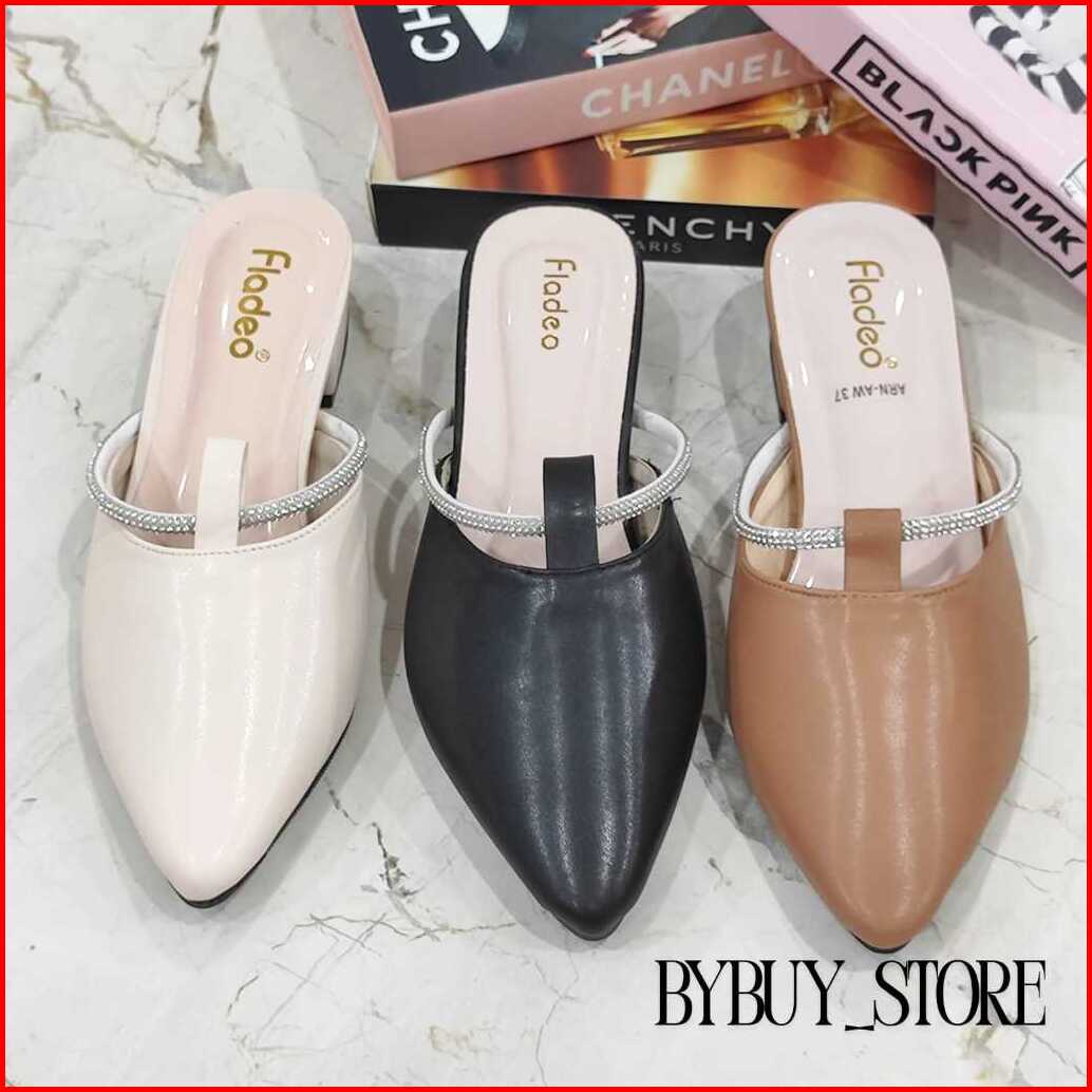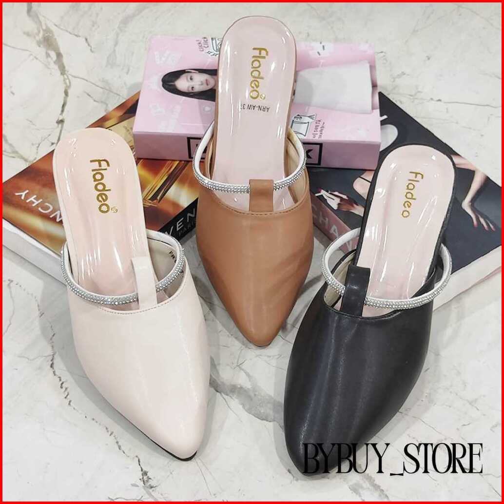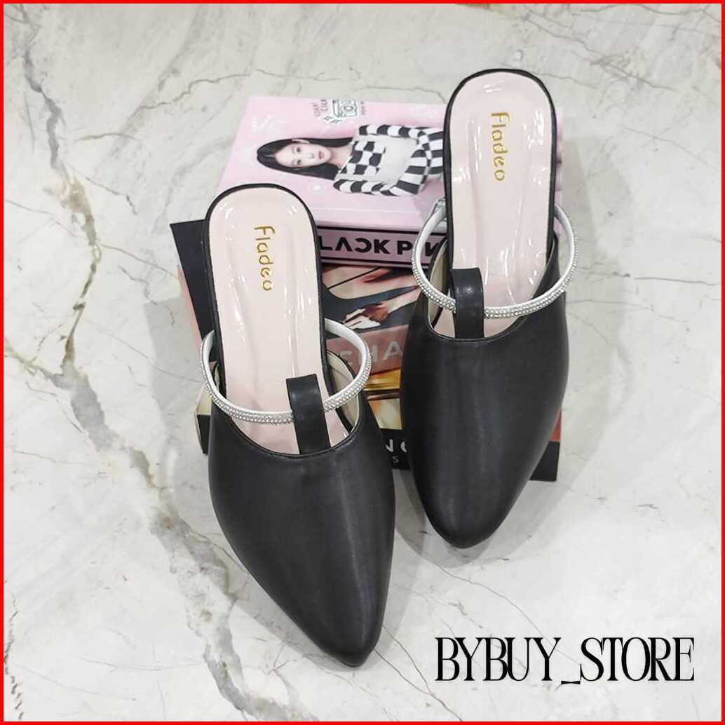 Sandal Wanita Termurah Hak 3cm Fladeo Tali Permata Tengah