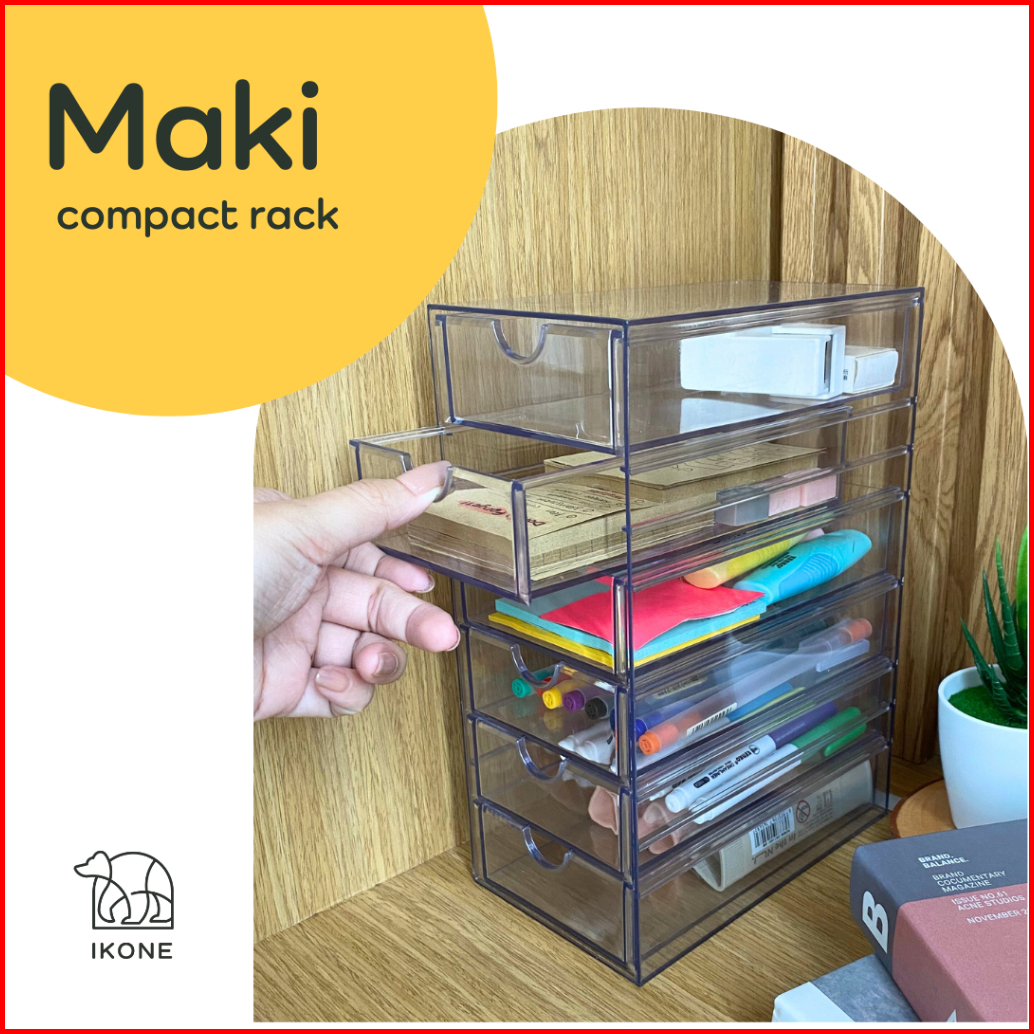 Ikonemaki Organizer Box Snacks Rak Laci Bening Compact Rack Storage Box Meja Makanan Cemilan Kotak Penyimpanan Aksesoris