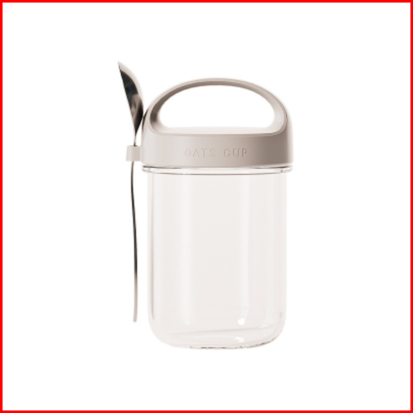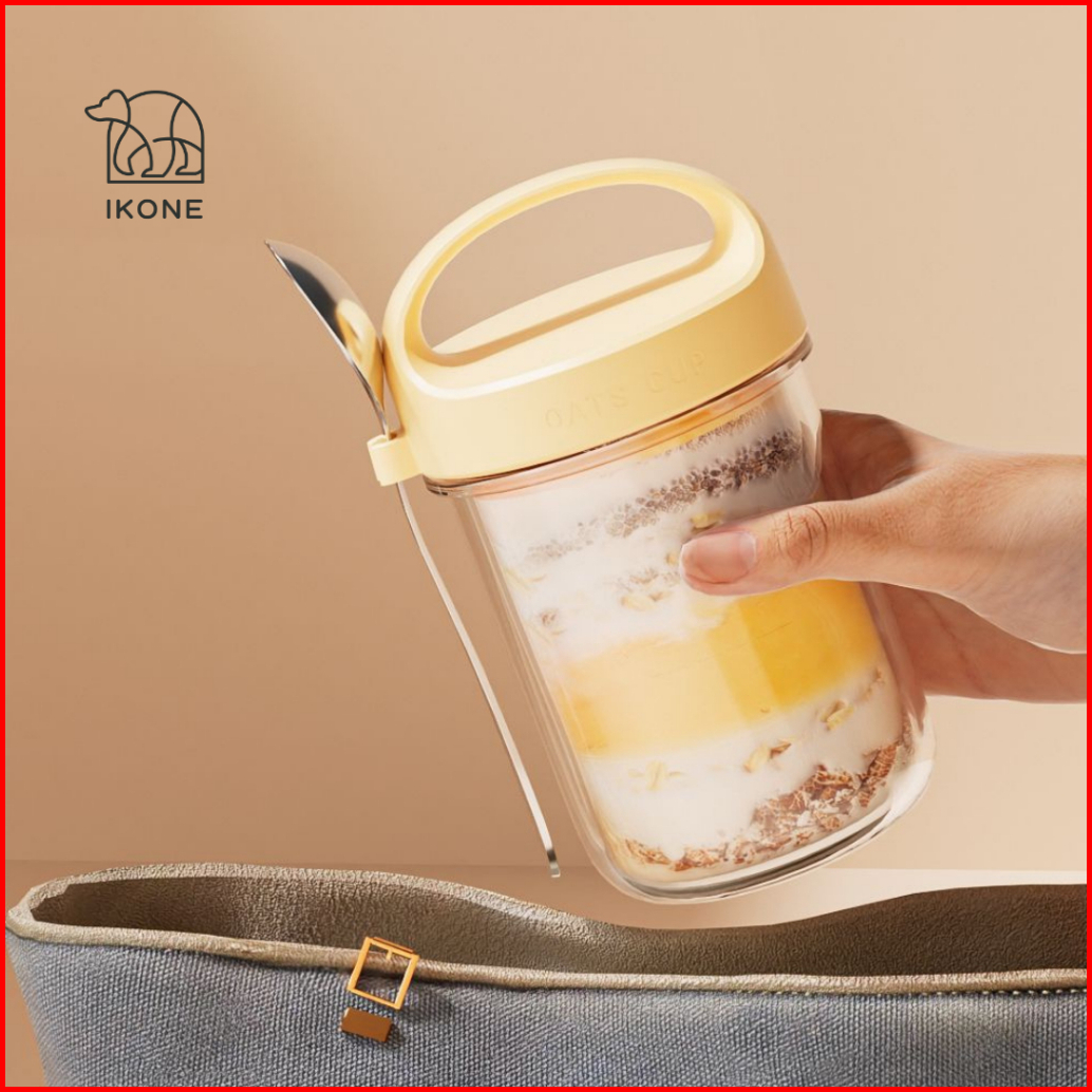 Ikonesuma Tumblr Kaca Gelas Aesthetic Tempat Oatmeal Sarapan Free Sendok Mug Serbaguna Breakfast Cup Tempat Penyimpanan