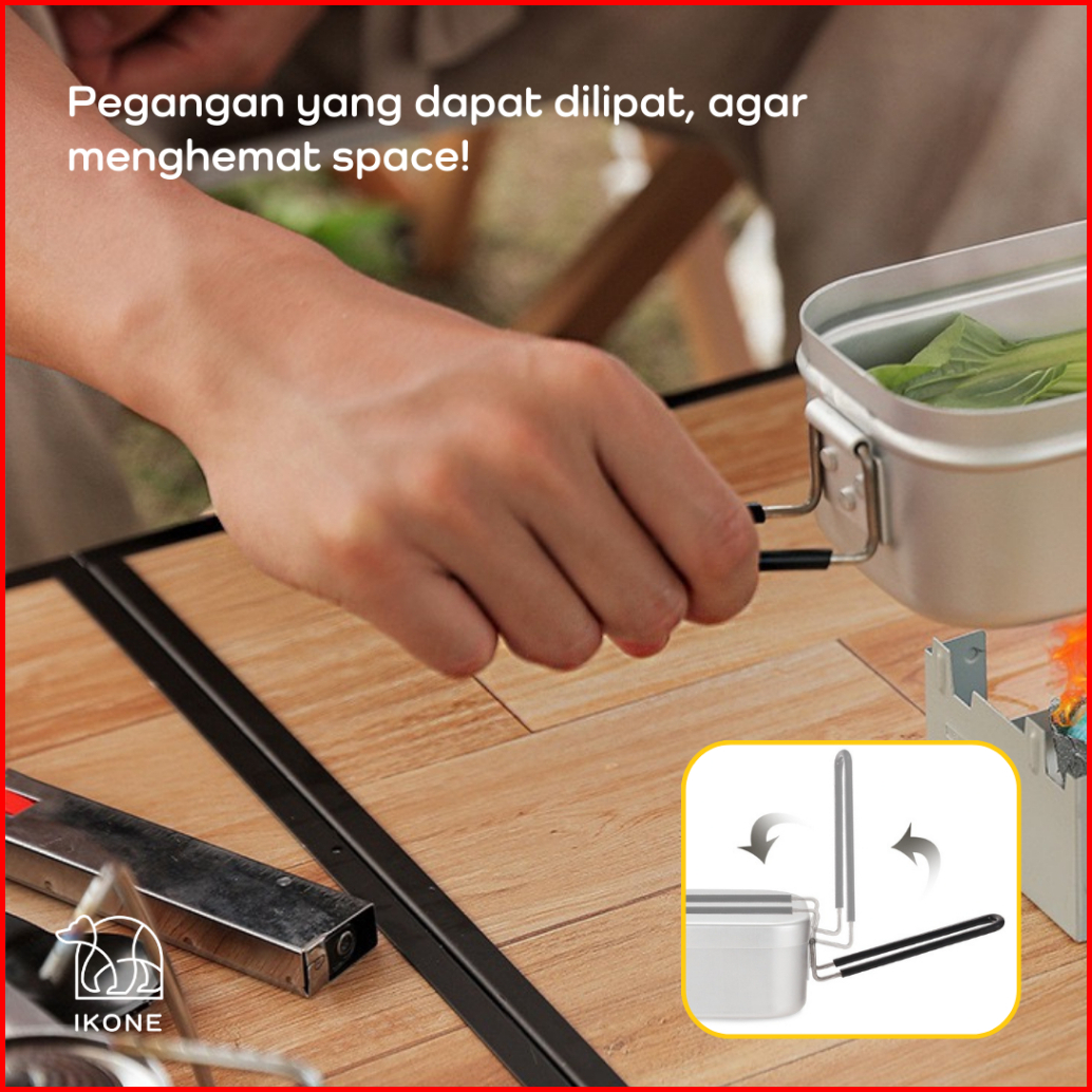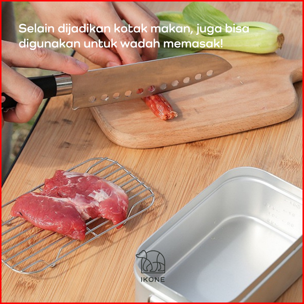 Ikonerata Kotak Makan Multifungsi Bahan Alumunium Dengan Gagang Bento Box Wadah Makanan Lunch Box Kotak Makan Aluminium