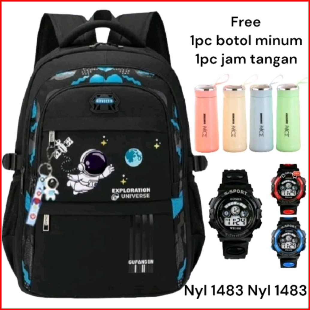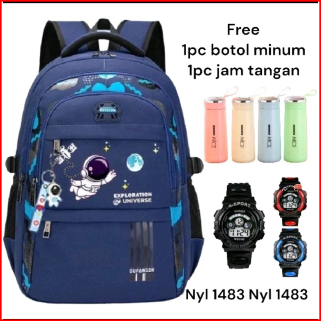 Beli 1 Dapat 3 Item - Tas Astronot Tas Ransel Anak Sekolah Tas Anak Laki-laki Free Botol Minum Dan Jam Tangan