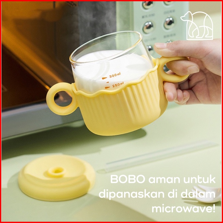 Ikonebobo Botol Minuman Anak-anak Lucu Botol Sedotan Kaca 400ml Botol Minuman Anak Sekolah Portable Water Bottle