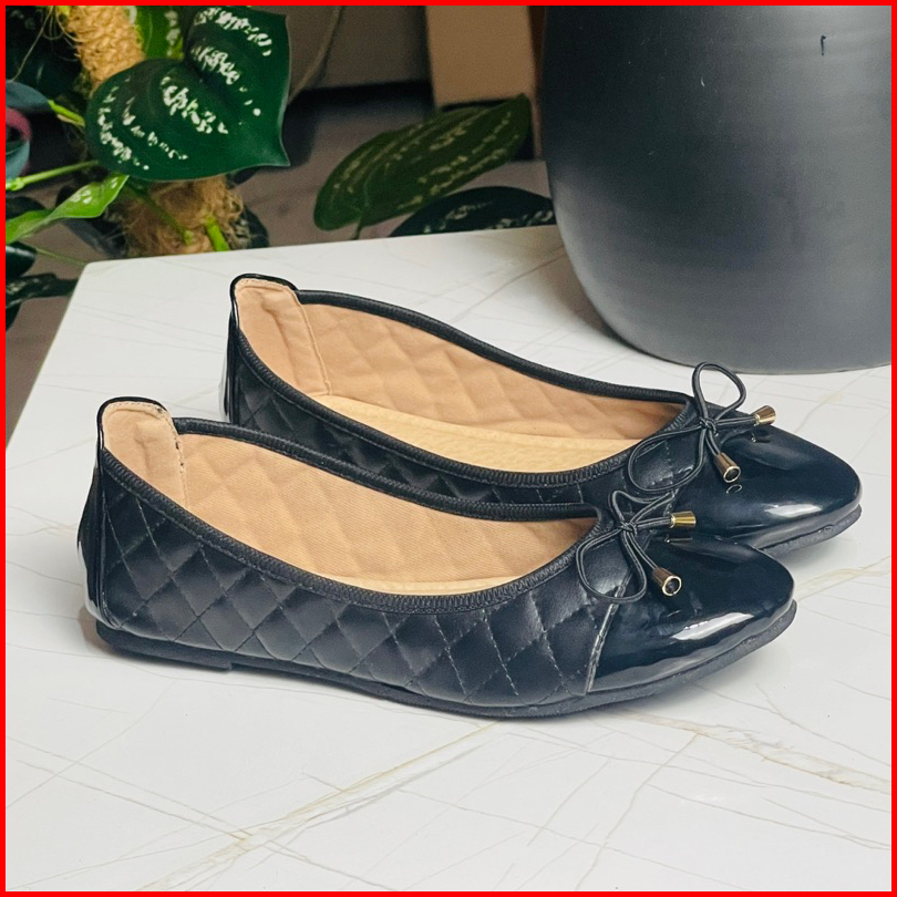 Sandal Wanita Nami Flatshoes Wanita Black Series Bahan Bordir Motif Luxury Varian Tali Pita