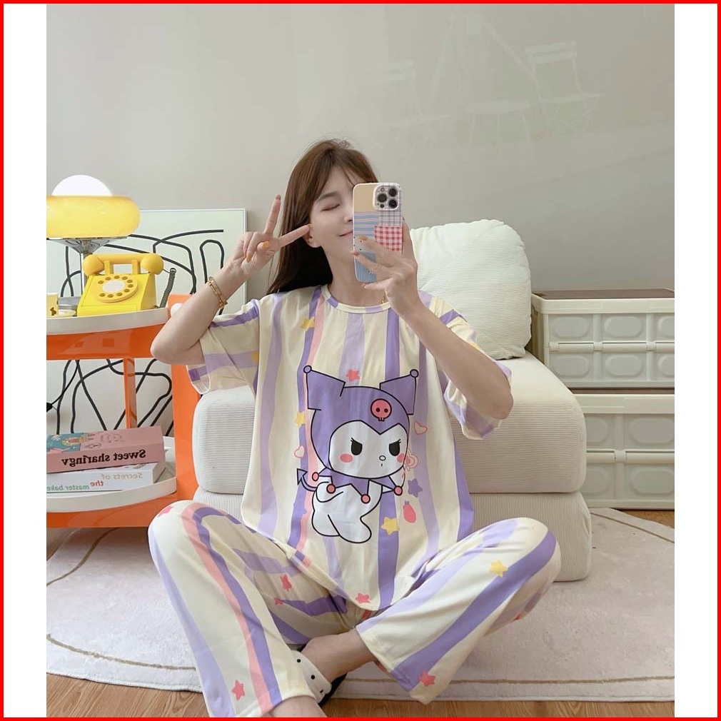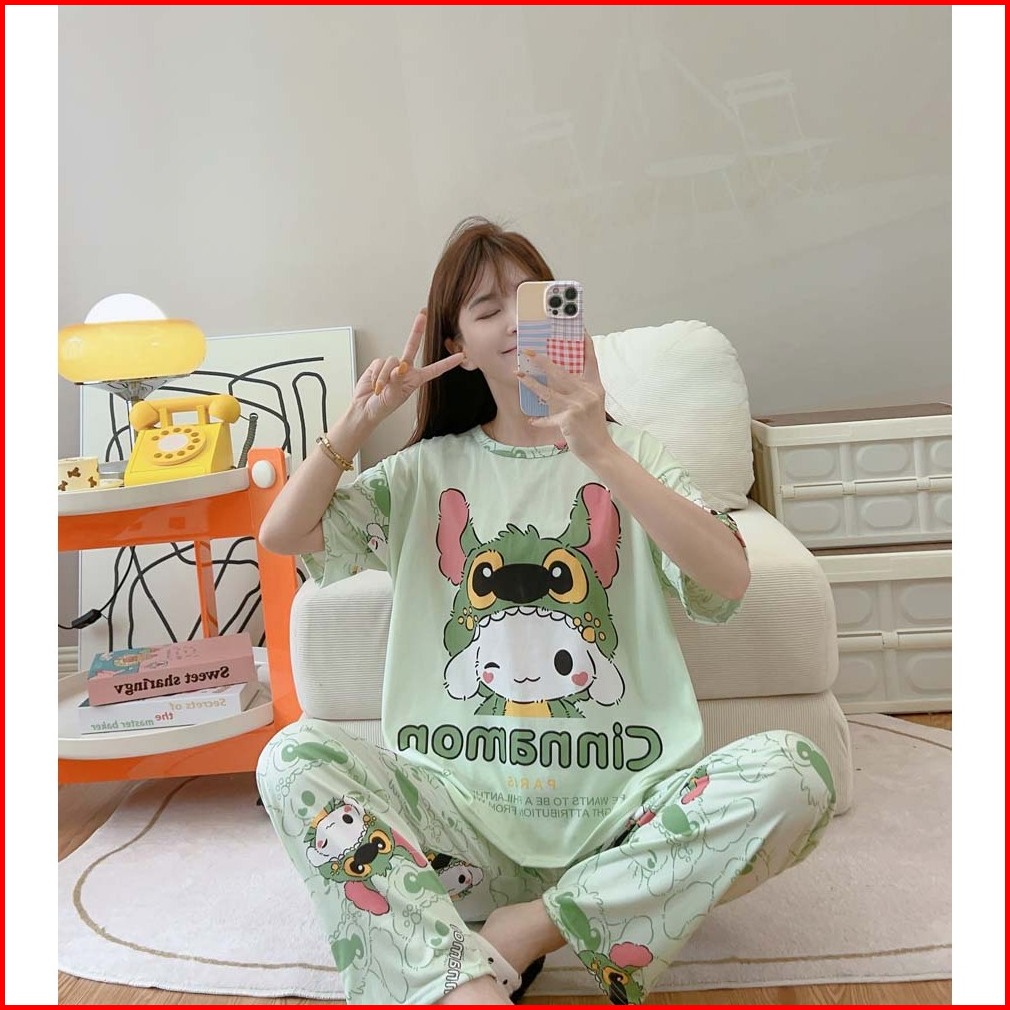 2025 Piyama Baju Tidur Wanita Remaja Dewasa Set Baju Lengan Pendek Celana Panjang Murah Setelan Kaos Motif Kartun Lucu