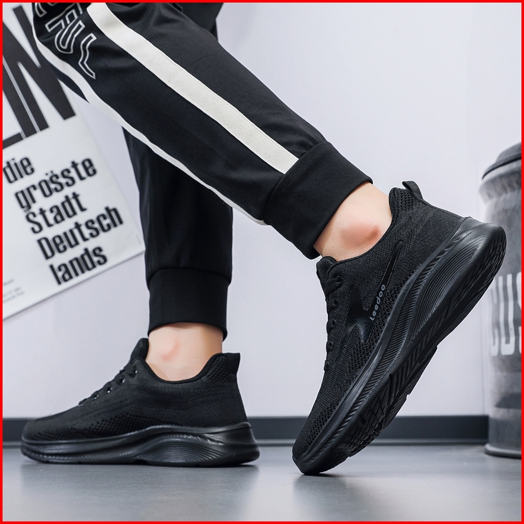 Leedoo Sepatu Ringan Pria Sneakers Hitam Polos Sepatu Sekolah Sportstyle Hitam Ml107