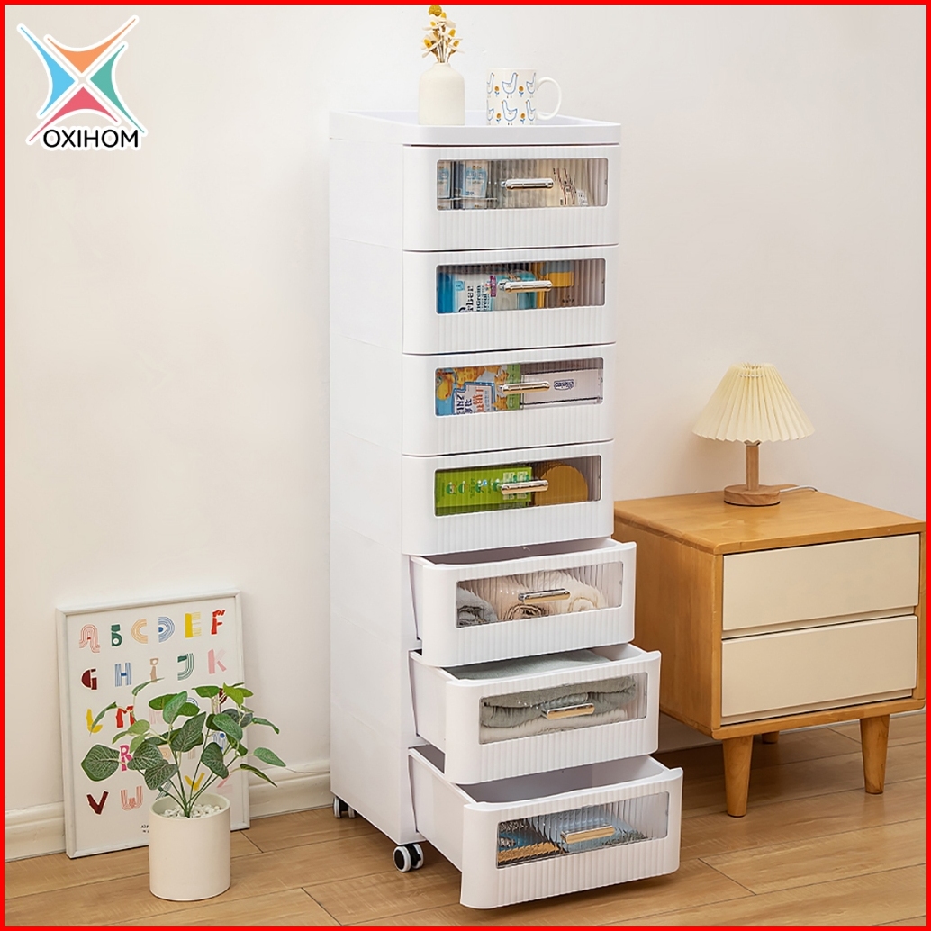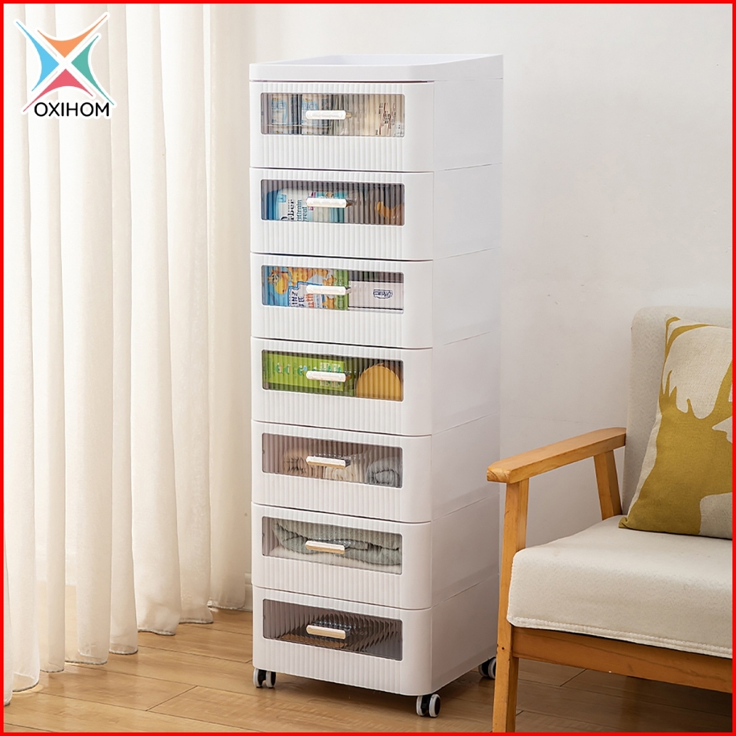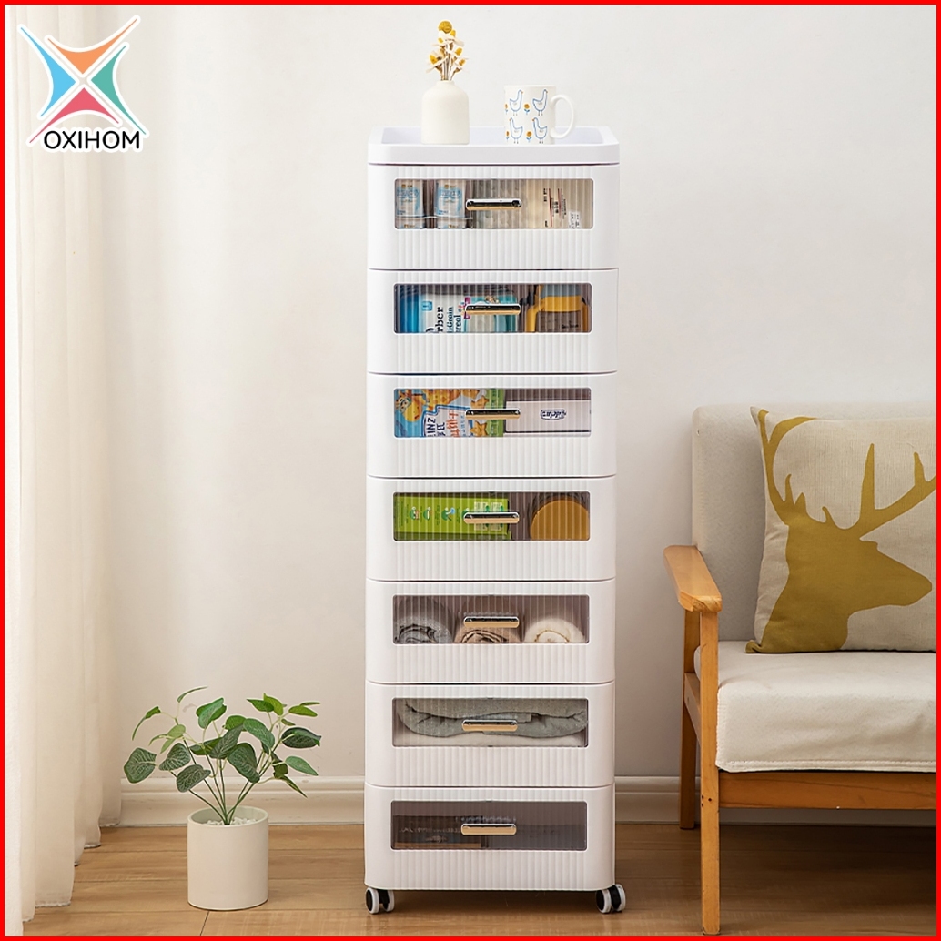 Oxihom Lemari Plastik Susun Lemari Baju Lemari Pakaian Laci Plastik Susun Dengan Roda Tutup Transparant