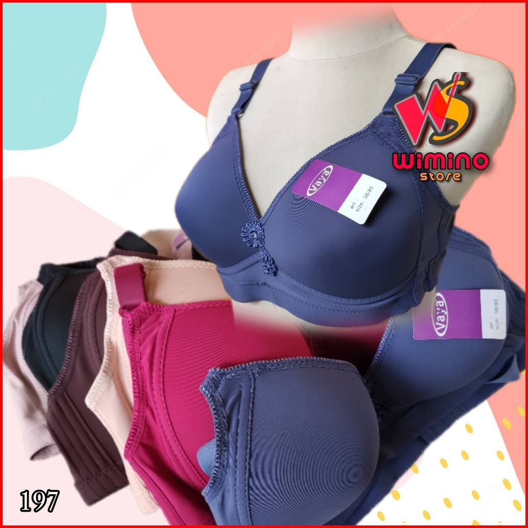 W197 1 - 3 Pcs Vaya Bra Busa Tanpa Kawat Cup C Besar Tiga Pengait Size 36 - 46