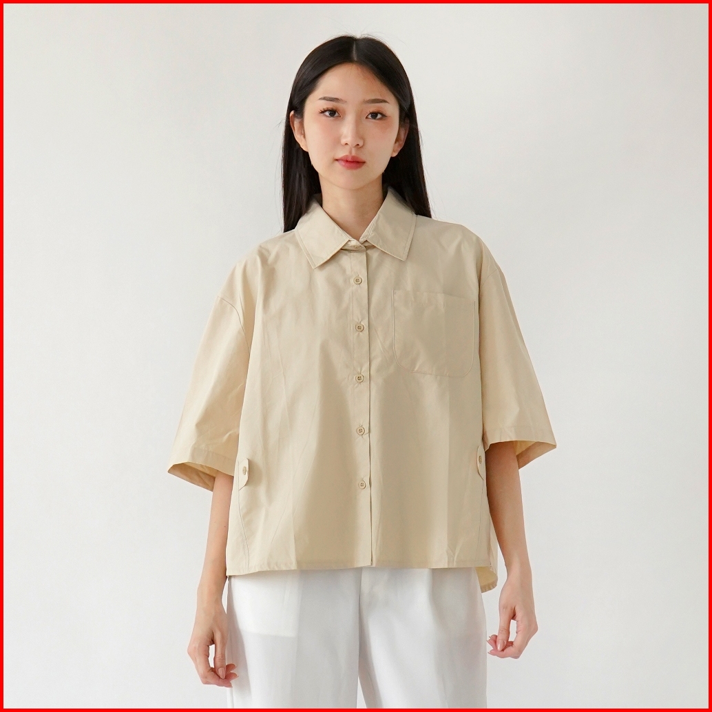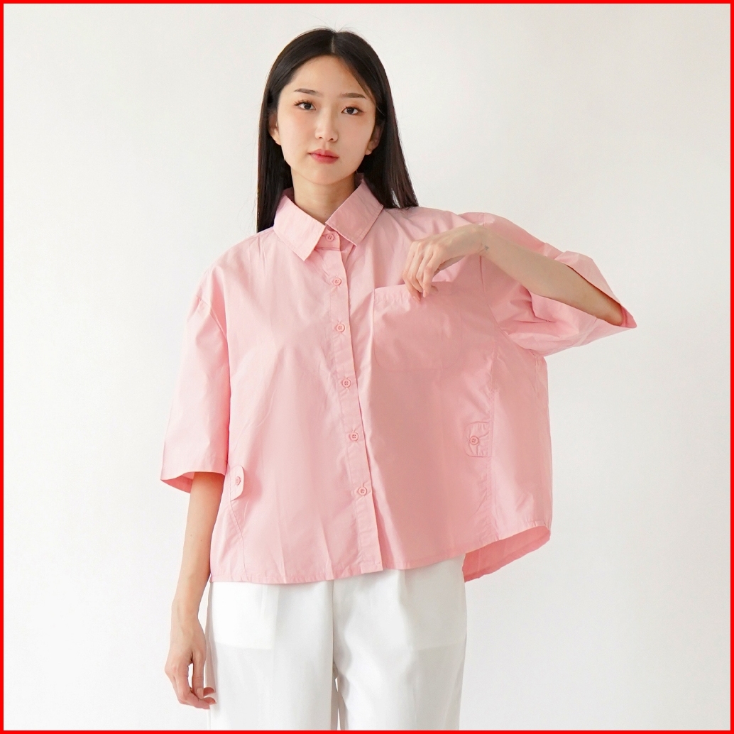 Queentin Kemeja Wanita Boxy 1184 Cotton Wash Polos Lengan Pendek