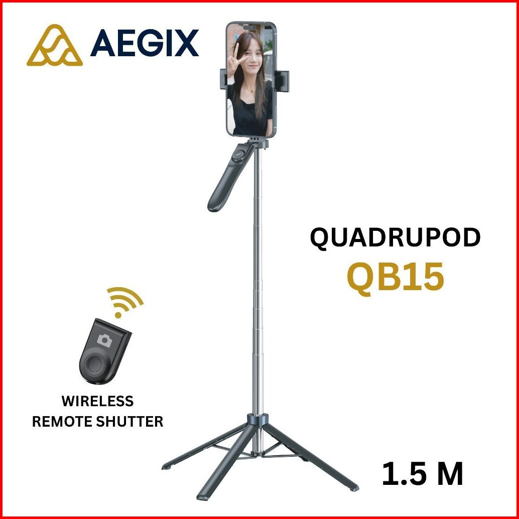 Tongsis Quadrupod Aegix Qb15 Tripod 4 Kaki 145cm Remote Bluetooth Holder Hp Vertical Horizontal Mount 1 4 Ringlight Kame